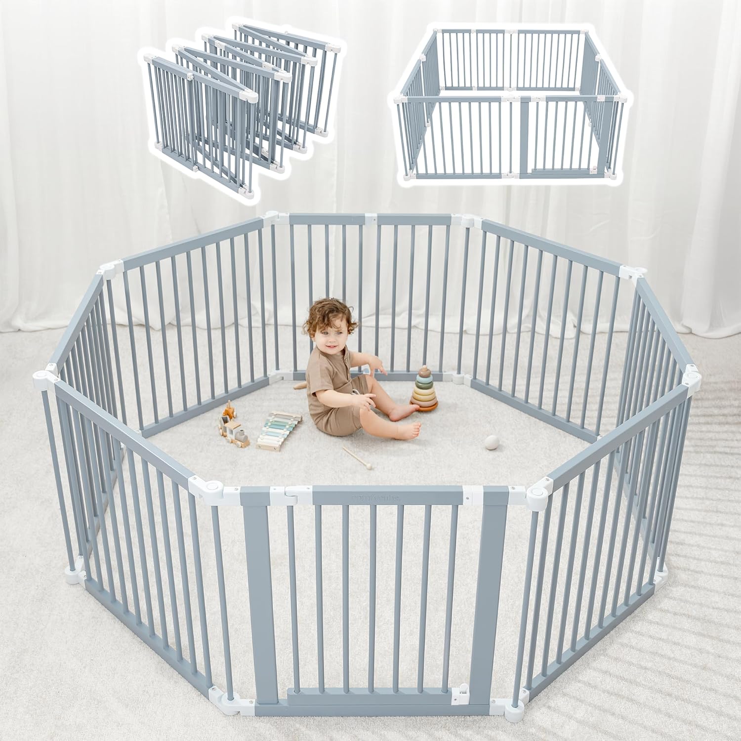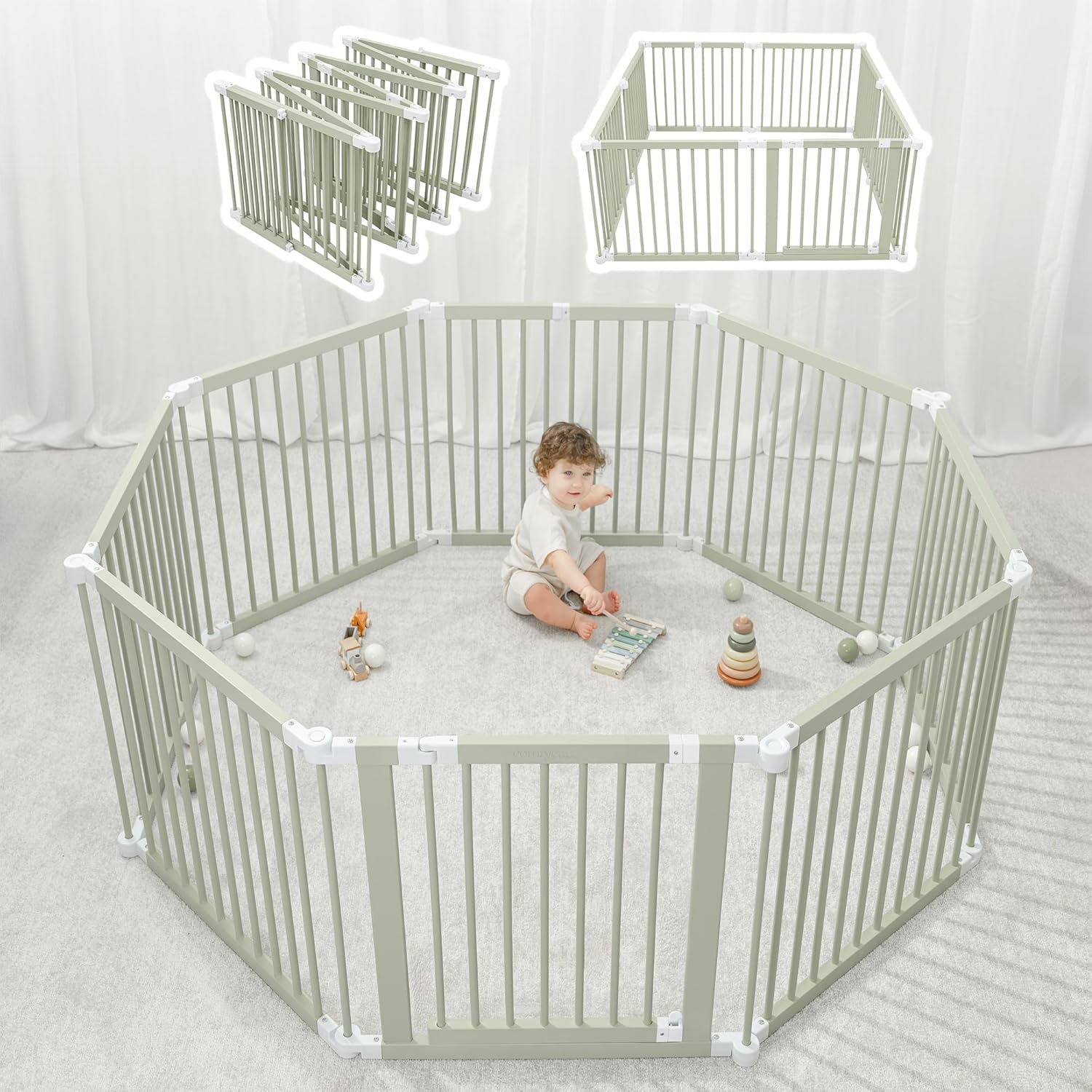 • Child Safe Lock & Easy Parent Access: The child proof lock ensures your baby stays safe inside while parent access is easy. Just turn the latch to enter and exit the baby fence playpen.