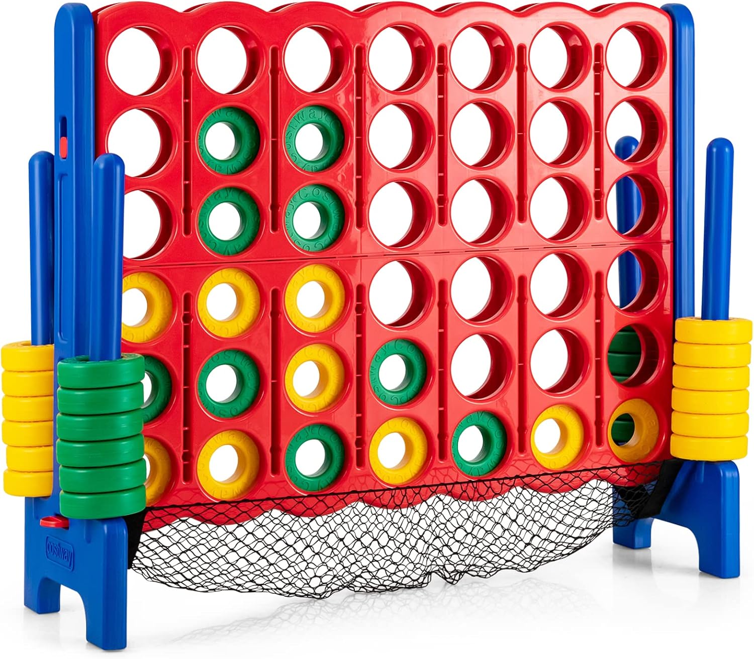 - [HIGH DURABILITY & SAFETY]Made of carefully selected materials, our jumbo 4-to-score giant game set is very durable and will not harm user's safety. Premium PE and PP materials can provide you with a long service life. And the edges are very smooth to ensure that the player will not be scratched during the game.