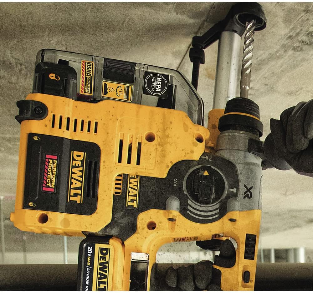 - SHOCKS ACTIVE VIBRATION CONTROL System of DEWALT 20V hammer drill reduces vibration felt by the user at the handles, compared to rotary hammers without this feature.