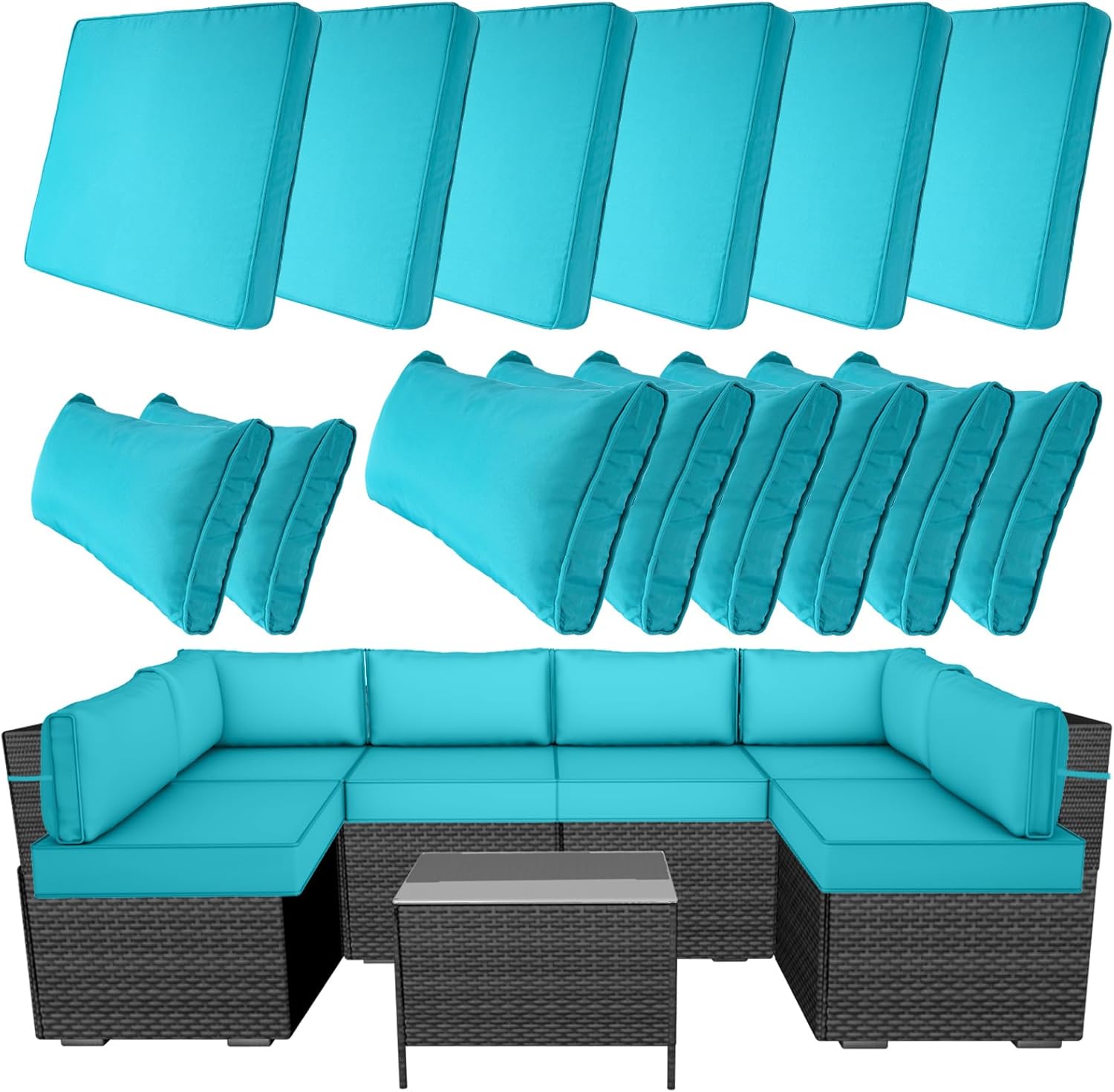 • What You Get: These outdoor patio cushion covers include a total of 14 pieces, 6 piece seat cushions (25.6Lx25.6Wx4H inches), 6 piece backrest pillow (25.6Lx13.5Wx4H") and 2 piece small back pillow ( 21.6Lx13.5Wx4H"). Fits 7 piece Wicker Rattan Sectional Couch Chair Furniture Set