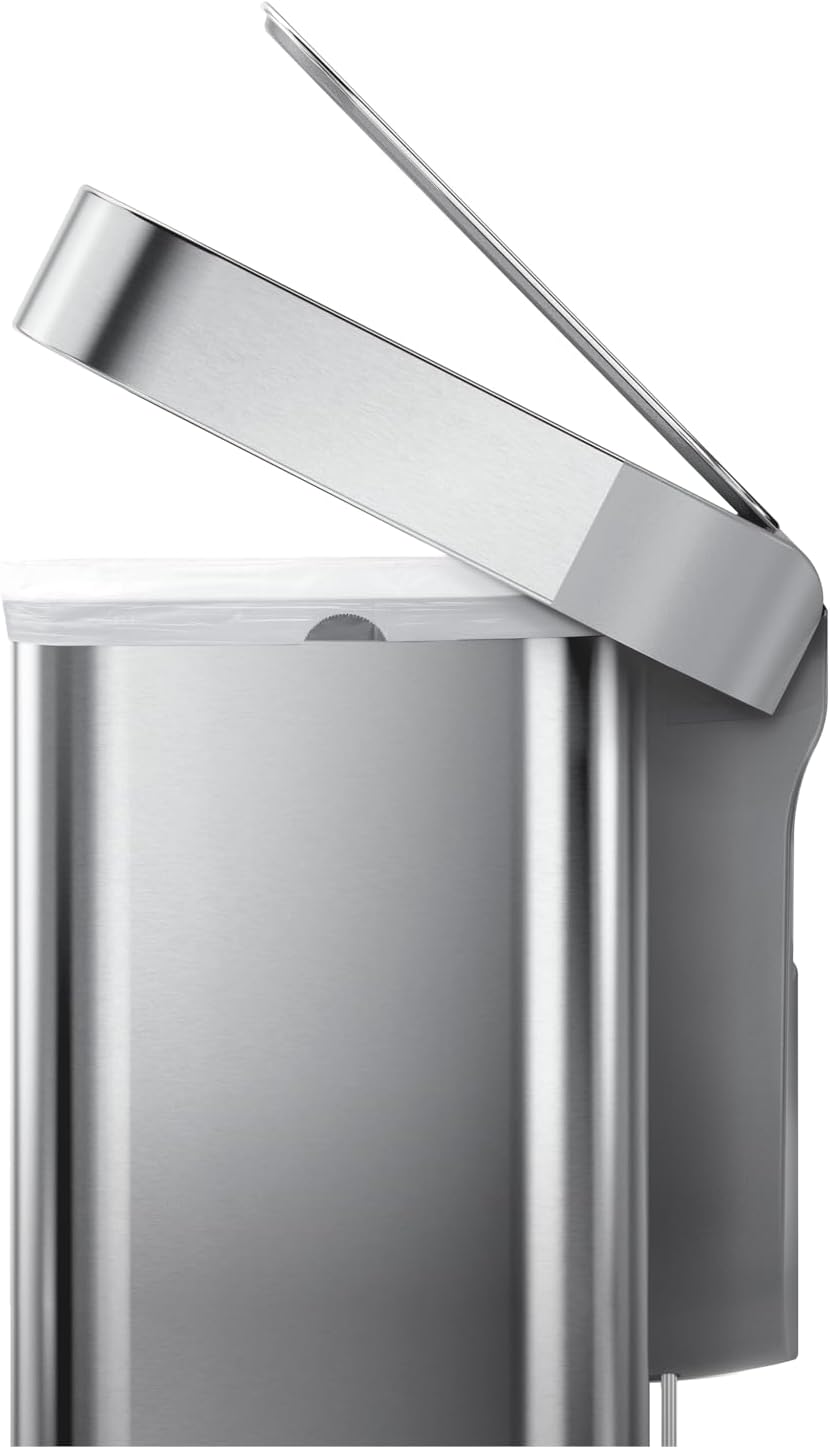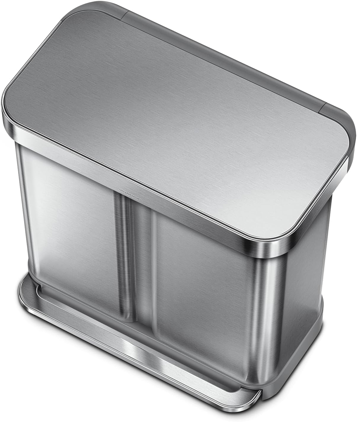dual compartment stainless steel rectangular step can makes it easy to neatly sort your trash and recyclables in one convenient, space-efficient space. On one side, it features an innovative 'liner pocket' that stores and dispenses liners from inside the can for a faster liner change. The other side has a convenient handled bucket for easy lifting and disposal of all your recyclables. The stainless steel liner rim grips the liner and keeps it hidden. A strong wide steel pedal is designed to last, and the patented lid shox technology ensures a smooth, silent close every time. Code H liner refill packs store perfectly in this can's liner pocket.