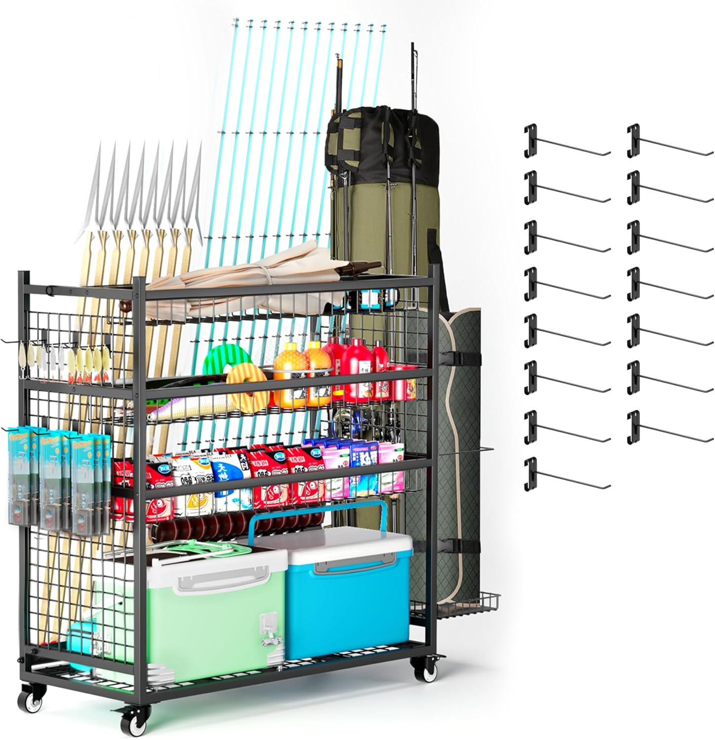 Extra Large Fishing Rod Rack �� 15 Hooks, Holds 20 Rods + Tackle/Reel Storage (45.2")
