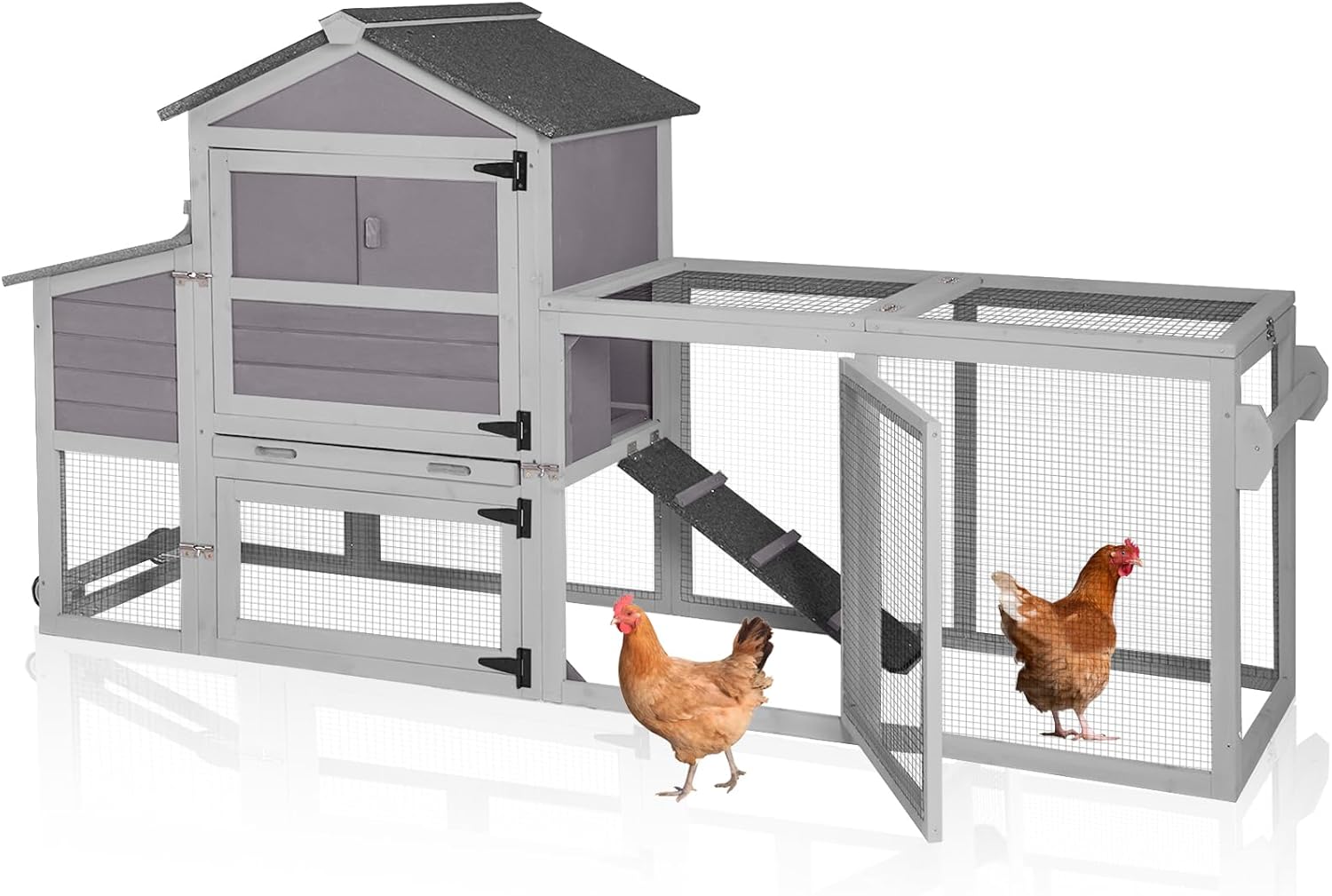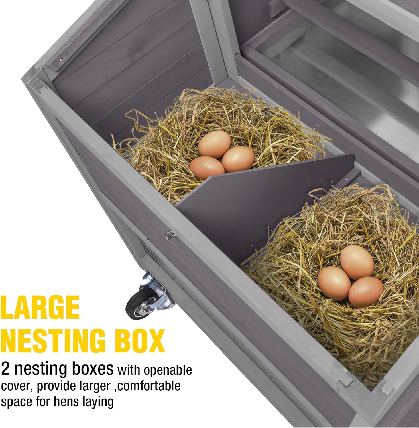 Expandable and portable outdoor chicken coop, equipped with wheels, brooding box, leak-proof pull-out tray and UV-resistant roof panel (gray)