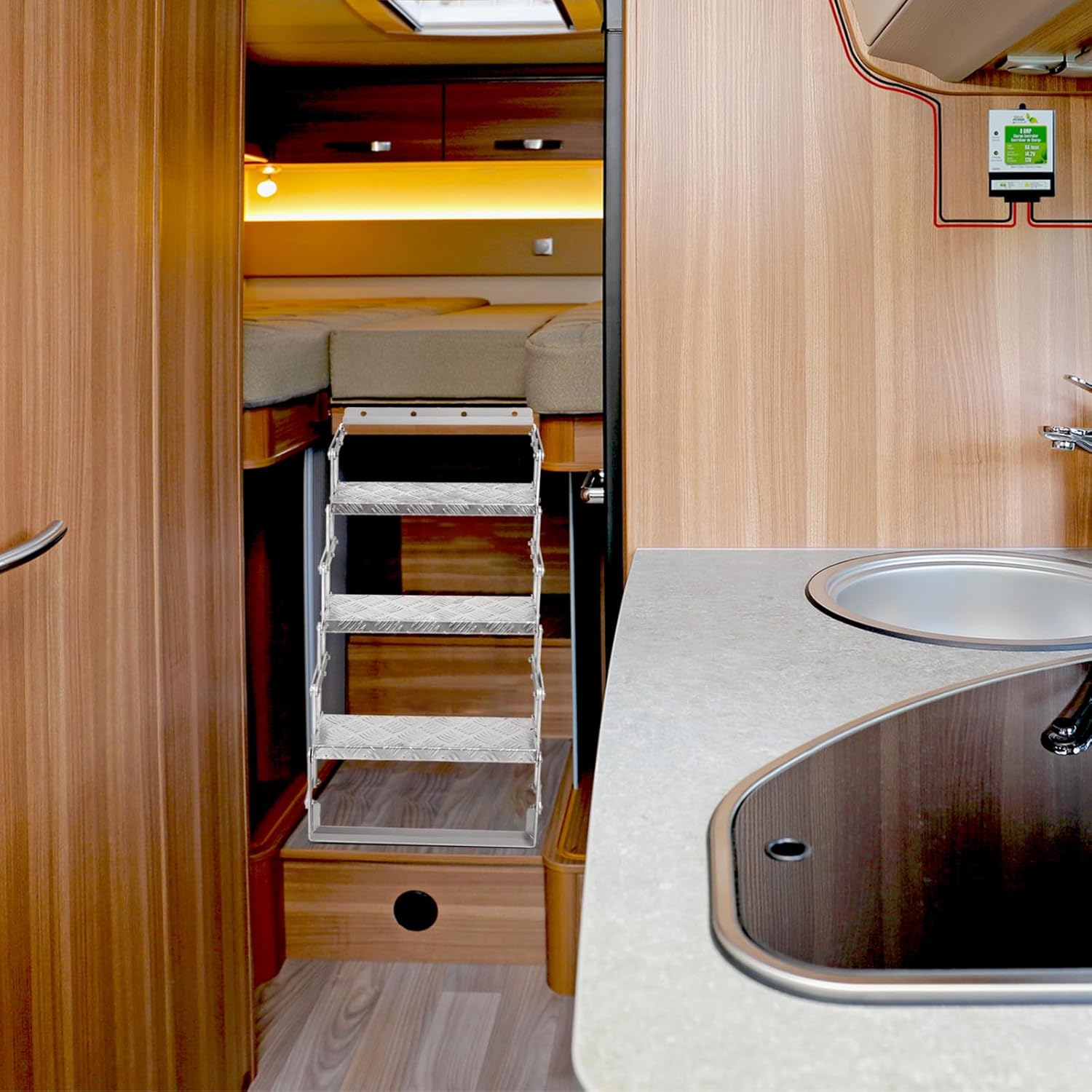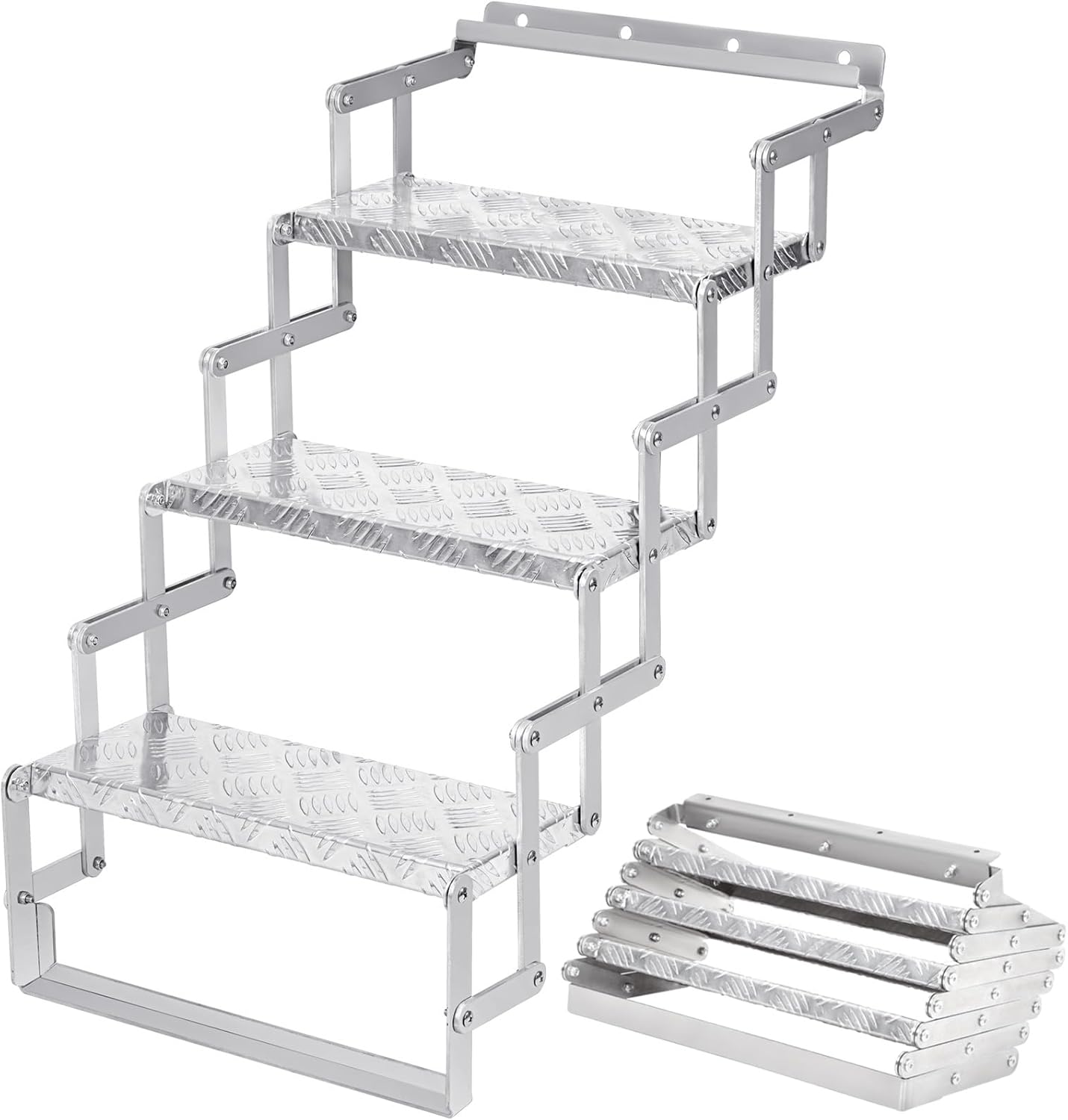 Aluminum folding staircase, 3-level outdoor travel trailer steps, 18-inch wide camping staircase, with anti-slip surface, portable staircase suitable for travel trailers, silver version