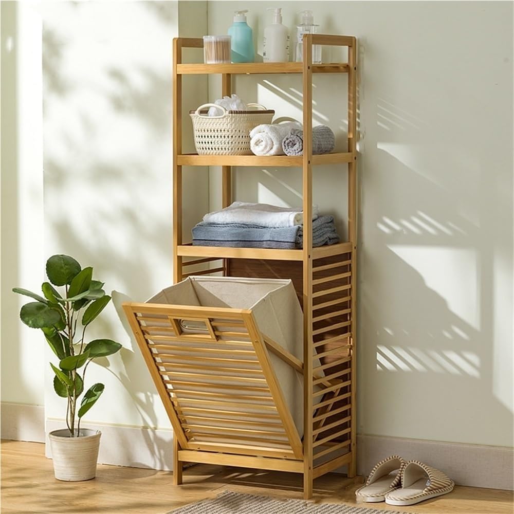 Bamboo Shelves Laundry Room Organization Laundry Hamper with Shelf Floor Standing Bathroom Storage Storage Shelves for Bathroom Laundry Room Room Multi Scenario Use(119 cm)
