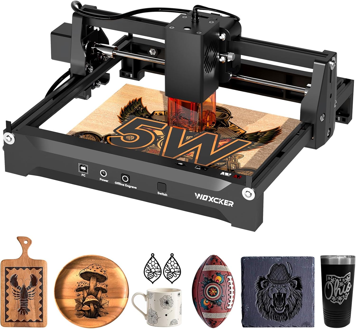 Laser Engraver, 5W L2 Mini Laser Engraving Machine No Need Installation 200mm x 150mm Bed Size for Beginner DIY, Pager, Wood, Acrylic, Leather, Coated Metal (Support Expansion Module)