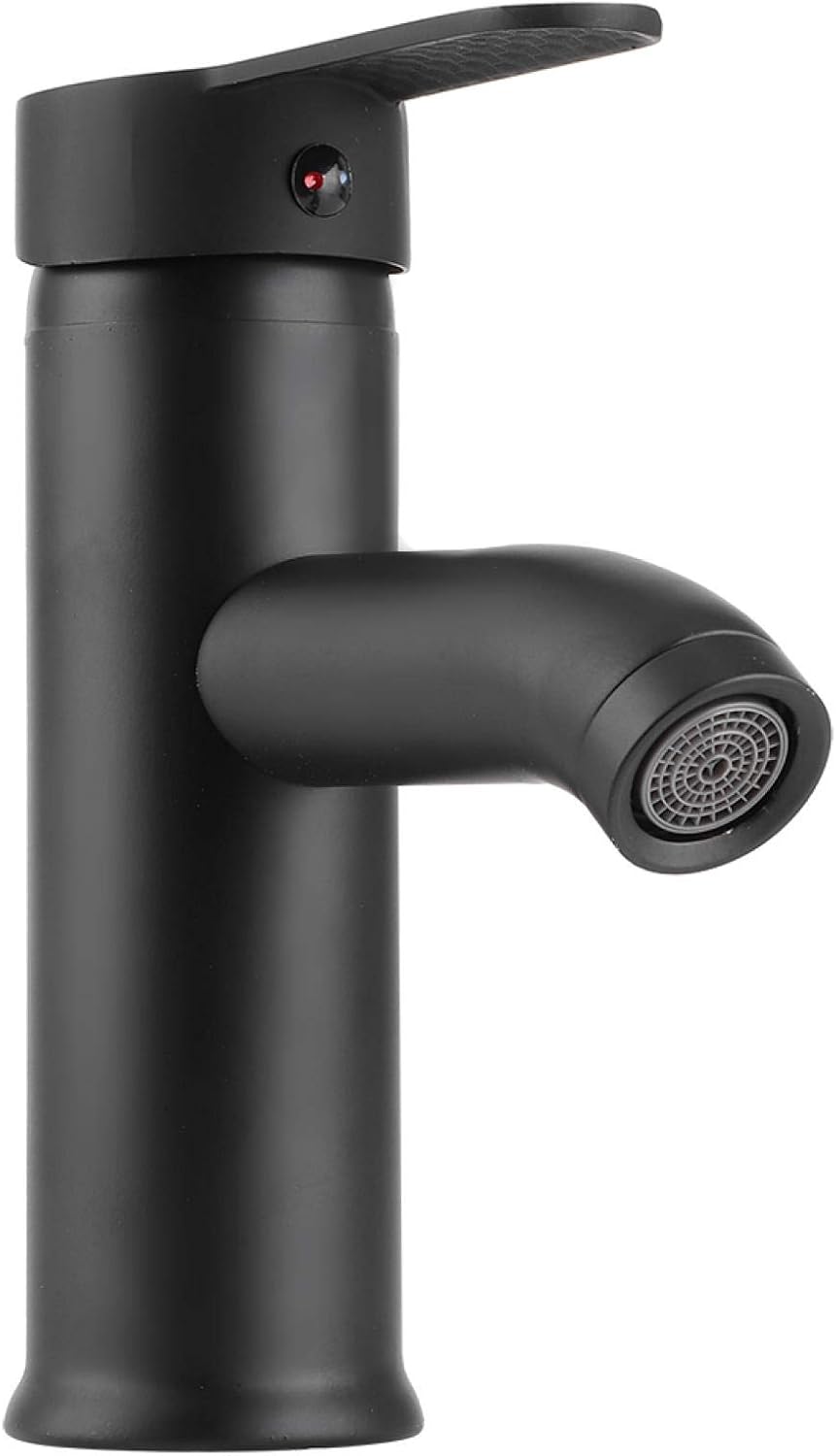 Matte Black Faucet Single Hole Bathroom Sink Tap Stainless Steel Modern One Handed Basin Mixer with Supply Hose Ideal for RV Sinks and Laundry Basins