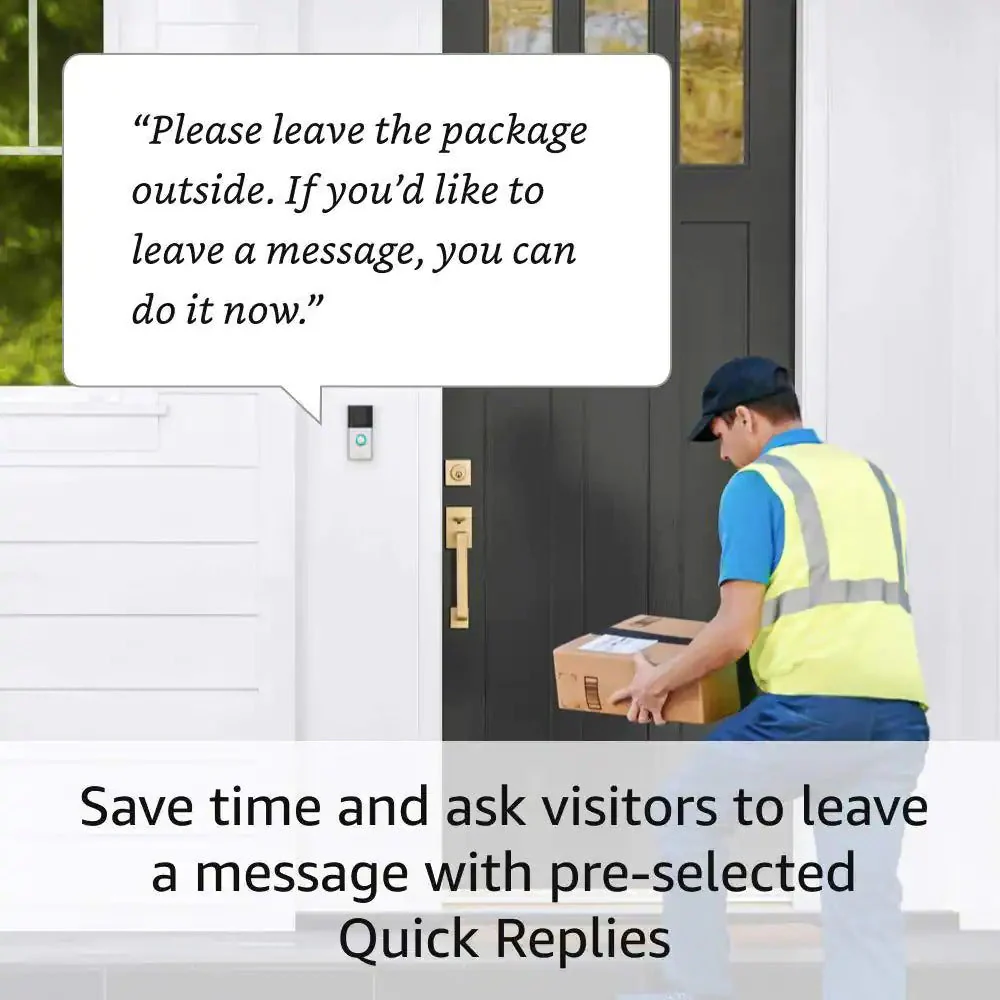 • Quick Replies let you answer the door with preset responses, or save time and ask visitors to leave a message with just a few taps.