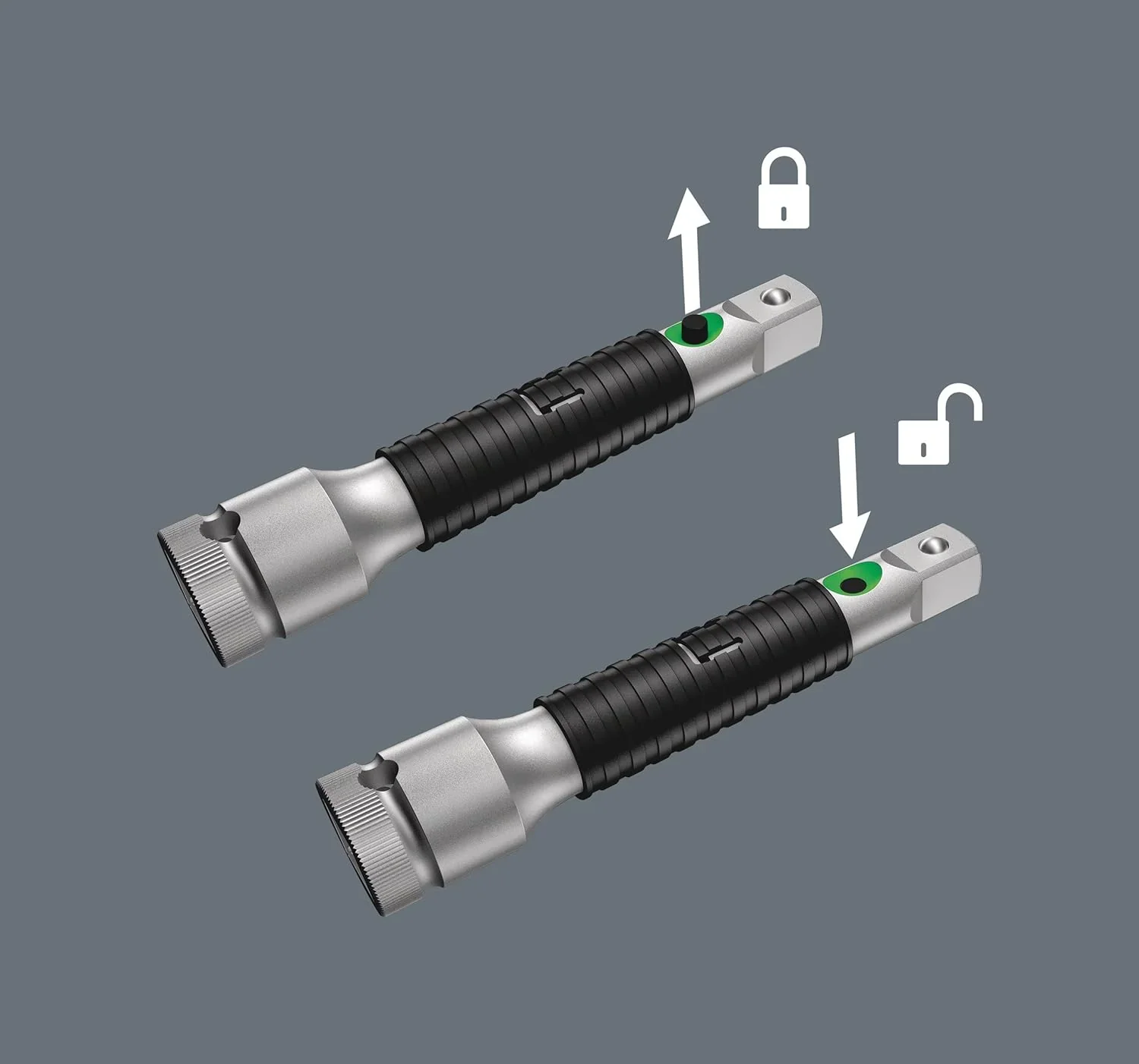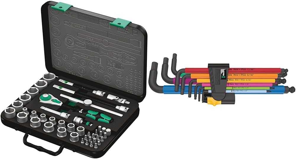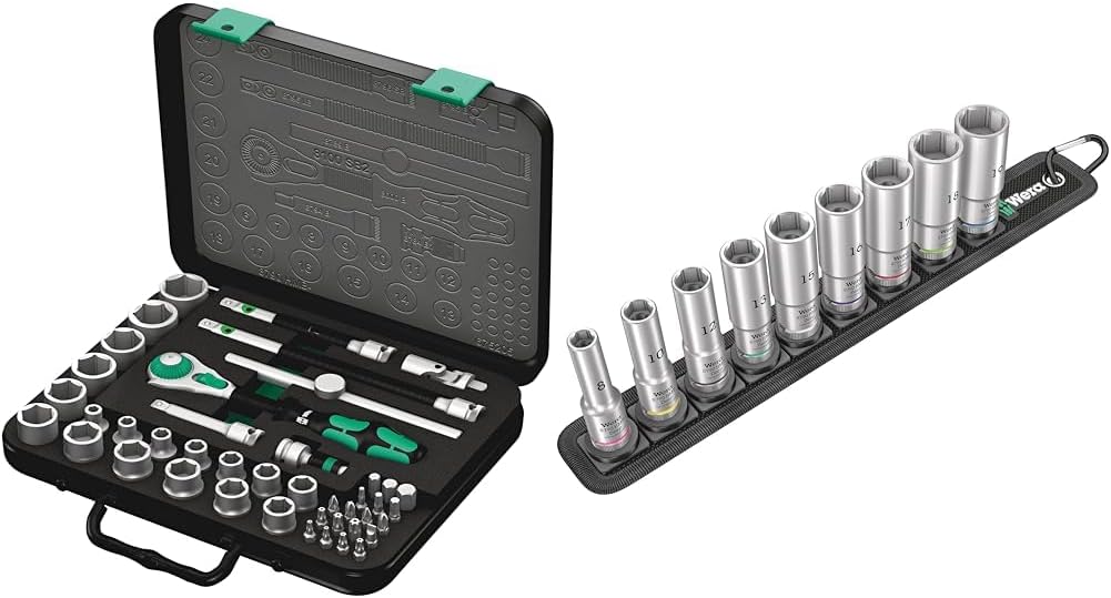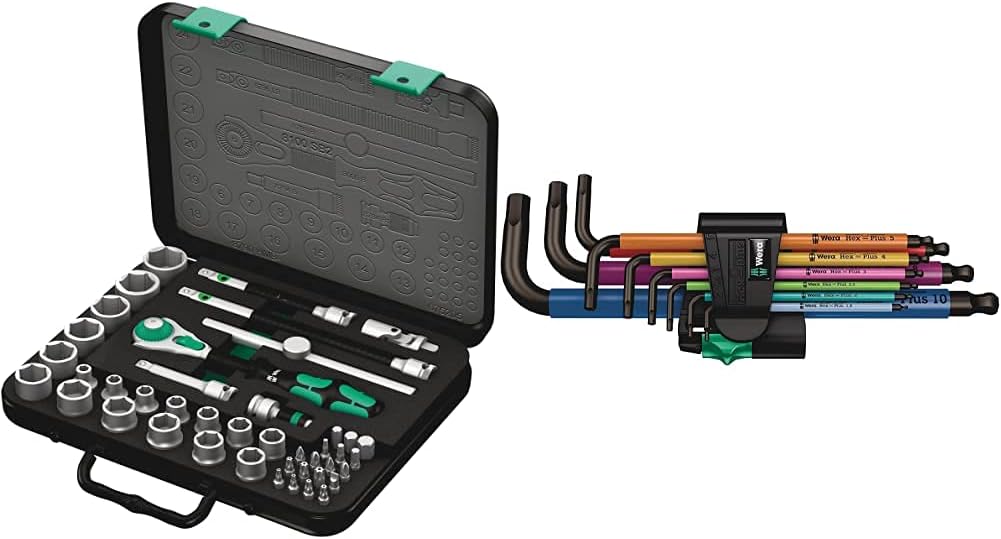 - Includes 3/8-inch ratchet.18 sockets (metric). 2 Flexible Lock Extensions (short and long). Sliding T-handle. Universal joint. Wobble Extension. Adaptor and 18 bits