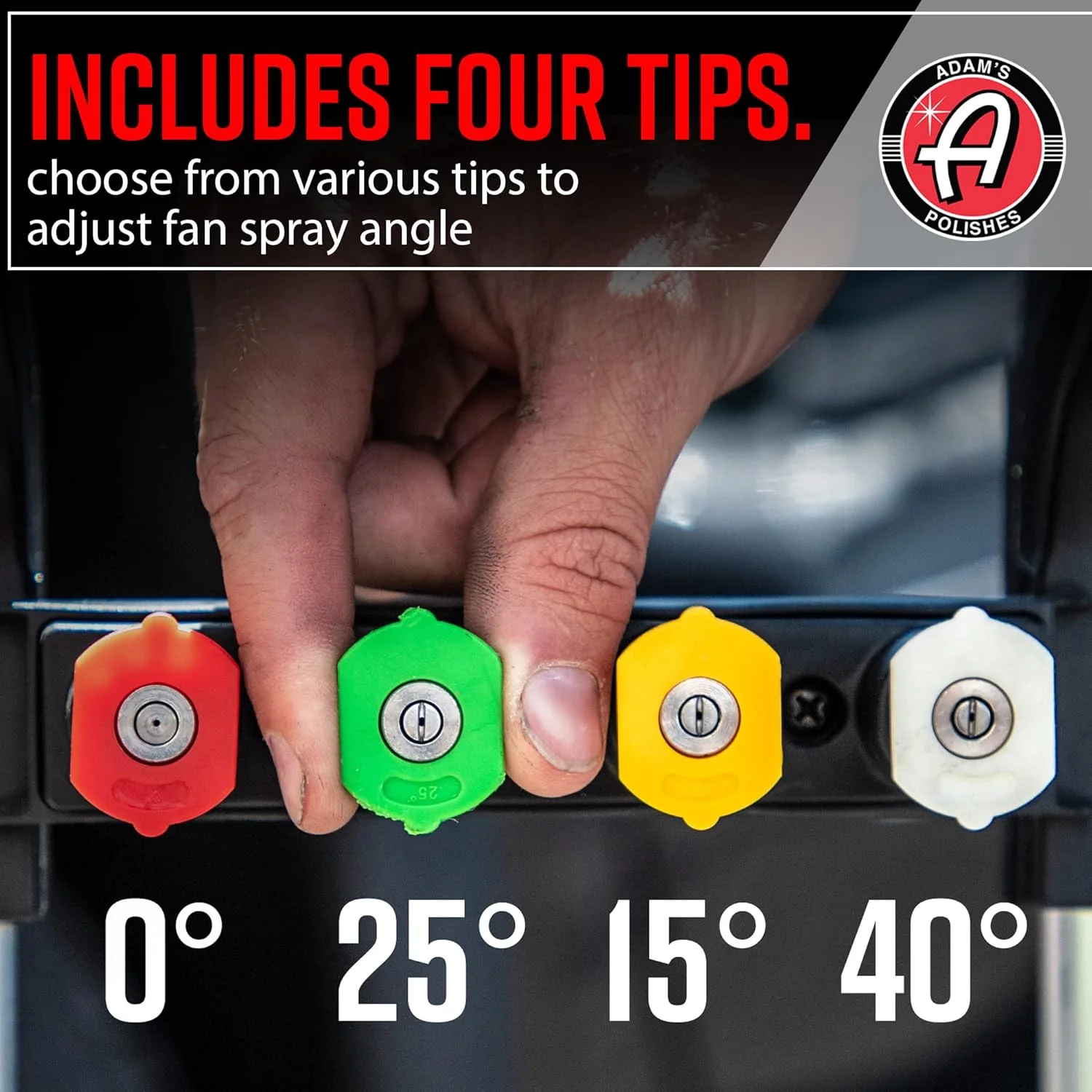 - EASY TO USE AND REPAIR - Adam's Pressure Washer uses universal parts. making repairs easy and upgrades simple. It also includes 0. 15. 25. and 40 degree washing tips. so you can customize your cleaning experience.