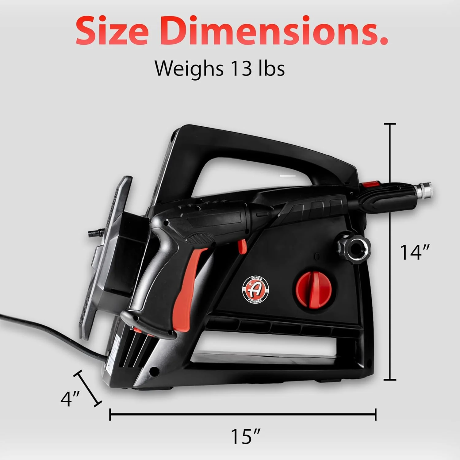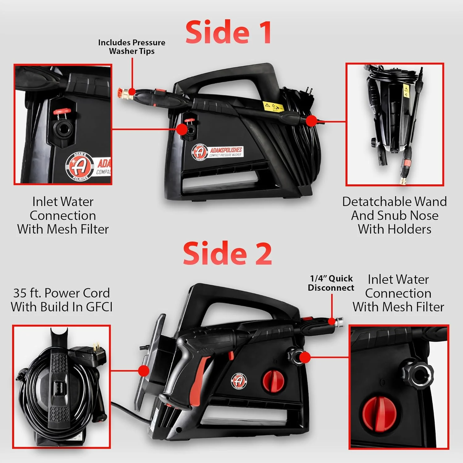 - POWERFUL AND VERSATILE - With a rating of 1.8 GPM and 2500 PSI ETL certificate. this lightweight mobile electric pressure washer can blast through tough dirt and grime. making it perfect for every car detailing need or at-home cleaning task. It pairs well with detailing tools like foam cannons. foam guns. undercarriage cleaning wands. and more.