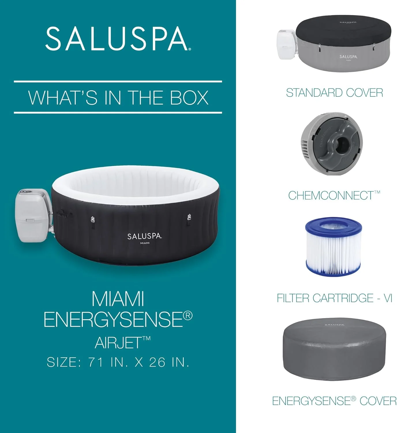 - SOOTHING MASSAGE SYSTEM: The SaluSpa Miami Inflatable Hot Tub Spa features 120 jets which release air bubbles to create a warm. relaxing experience at your home. The massage system has two different intensity levels for your preference.