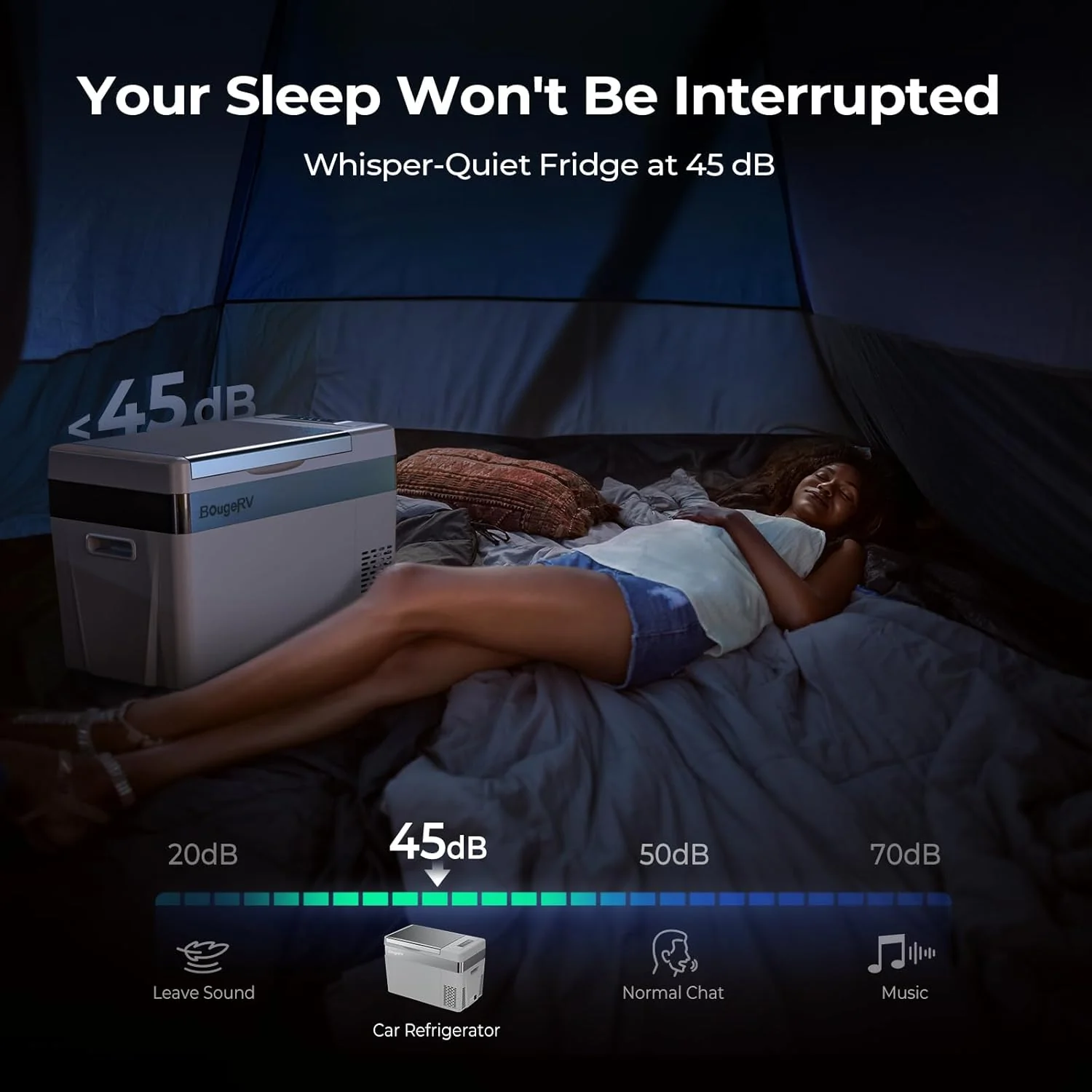 - 45dB Low Noise: The truck freezer is designed to run with low noise to make sure you have a good sleep after long driving. This camping fridge also has a shock-proof design to face the uneven road. operating with no problem in case of a 30 ° inclination when you are off-road
