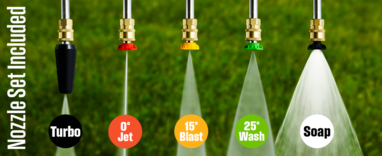 - Easy-Coil Nylon-Braided 25' hose - 20 oz (600 mL) Onboard Soap Tank to Add Detergents/Chemicals for Heavy-Duty Cleaning Power on Decks, Driveways, Garage Floors, Stairs, Fencing, Patio Furniture, and Vehicles