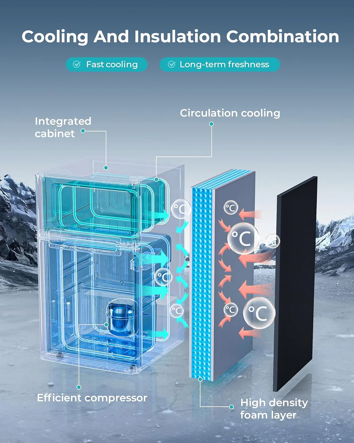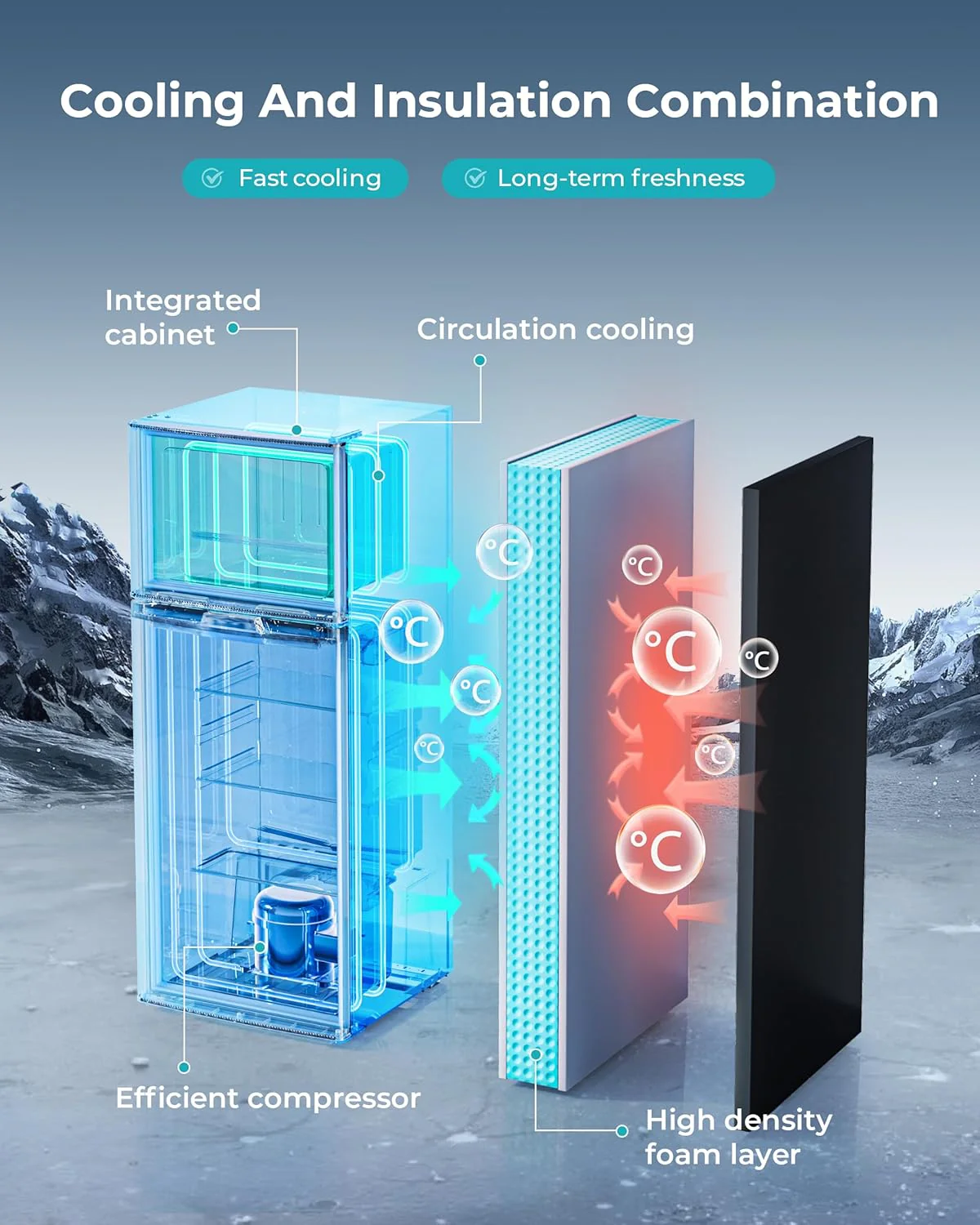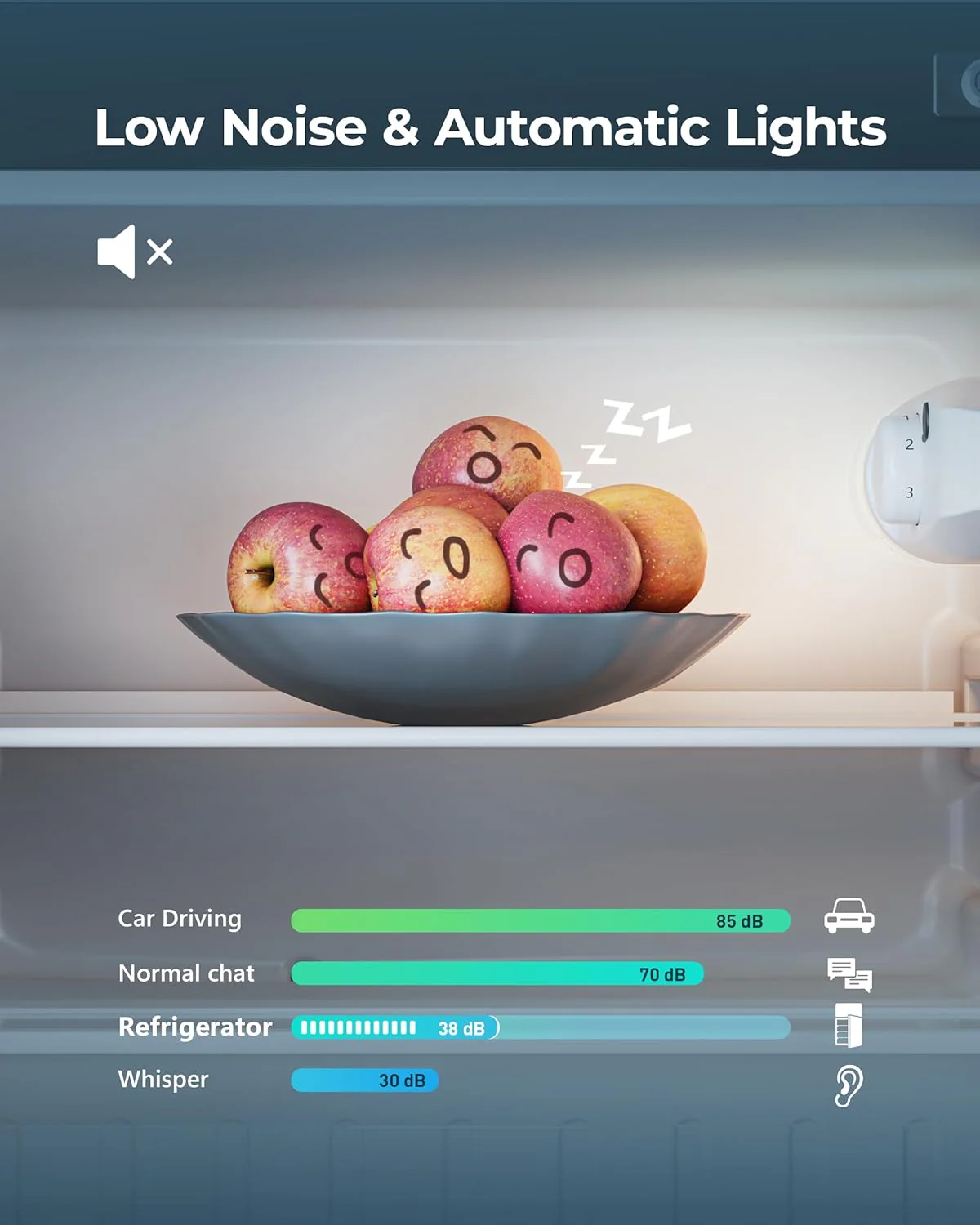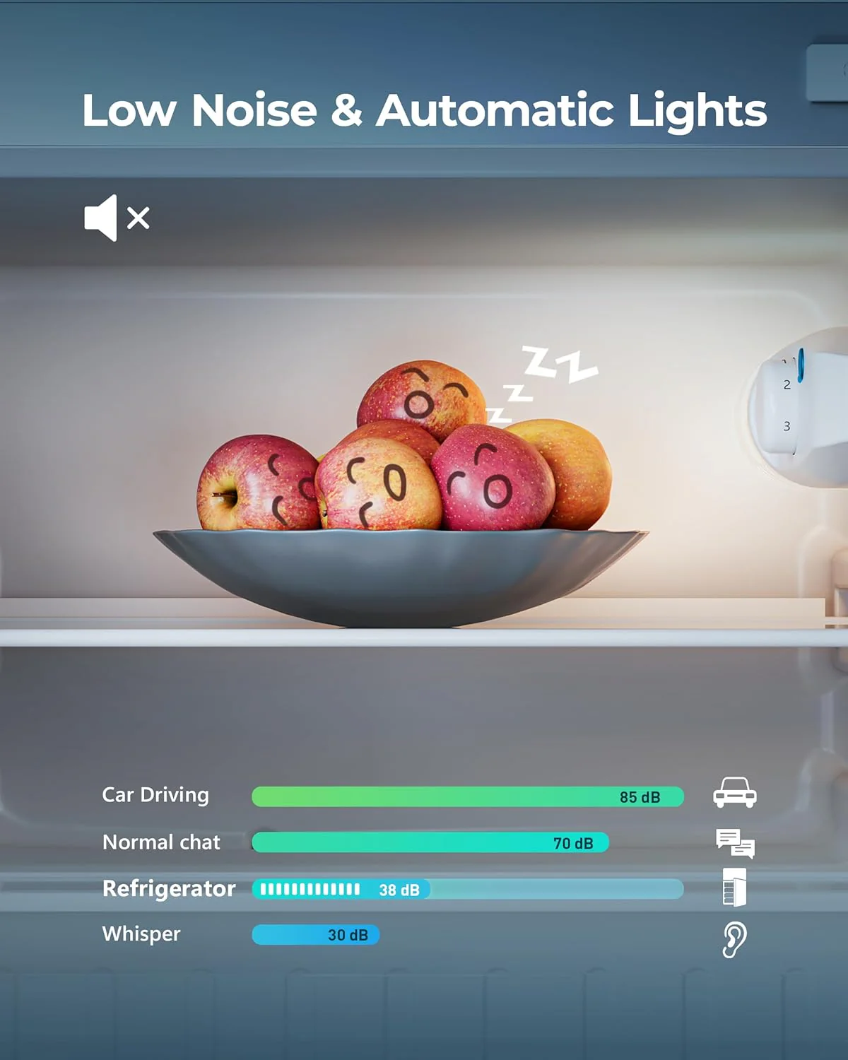 • 7-LEVEL TEMPERATURE ADJUSTMENT - Mini refrigerator with freezer adopts advanced 3D refrigeration technology 7-LEVEL TEMPERATURE ADJUSTMENT - Mini refrigerator with freezer adopts advanced 3D refrigeration technology and supports 7 temperature settings. The detailed temperature setting allows you to adjust the temperature of small fridge for bedroom according to your different needs. Small refrigerators for bedroom is also equipped with a powerful compressor. and it does not cause too much noise while operating efficiently. so you will enjoy a quiet atmosphere