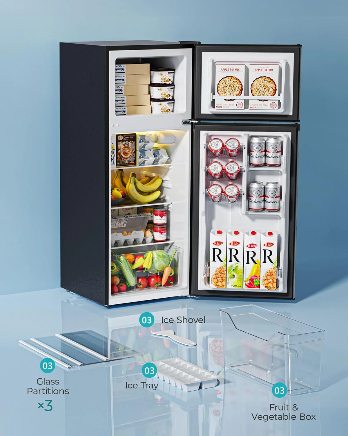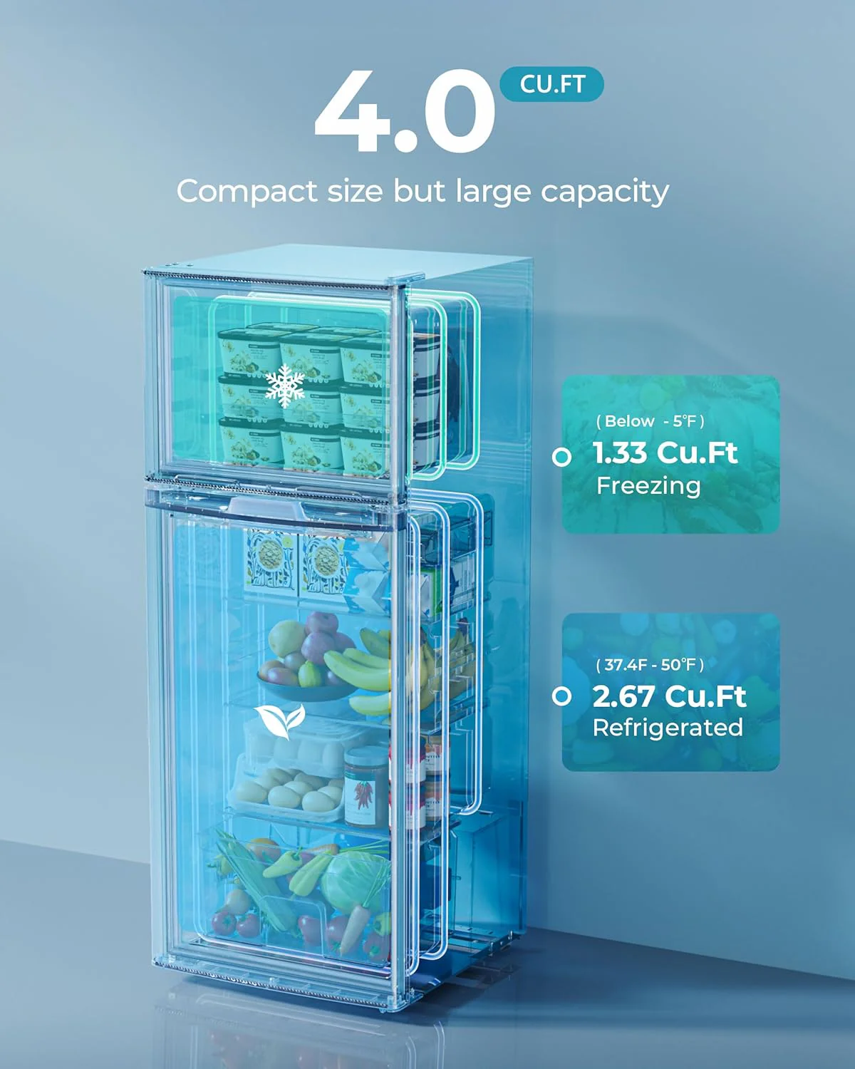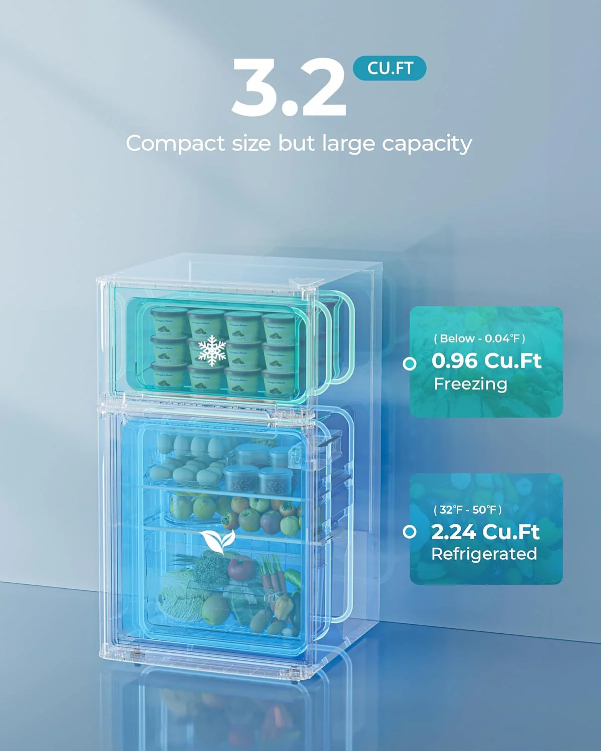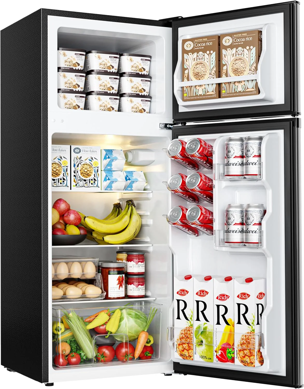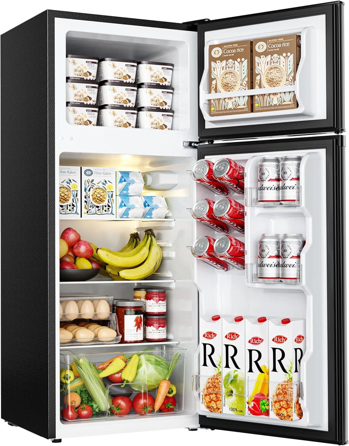 • THE PERFECT COMBINATION OF FRIDGE-FREEZER - Euhomy mini fridge with freezer combines the advantages of fridge and freezer to design the dorm fridge with freezer 2 door. Mini frdige has two storage zone at the same time. 0.96 Cu.Ft of freezer zone can be used to store ice cream or frozen food. 2.24 Cu.Ft of fridge zone can be used to preserve fresh fruits. vegetables or refrigerated drinks. When you buy a Small fridge it is equivalent to buying a fridge and a freezer at the same time