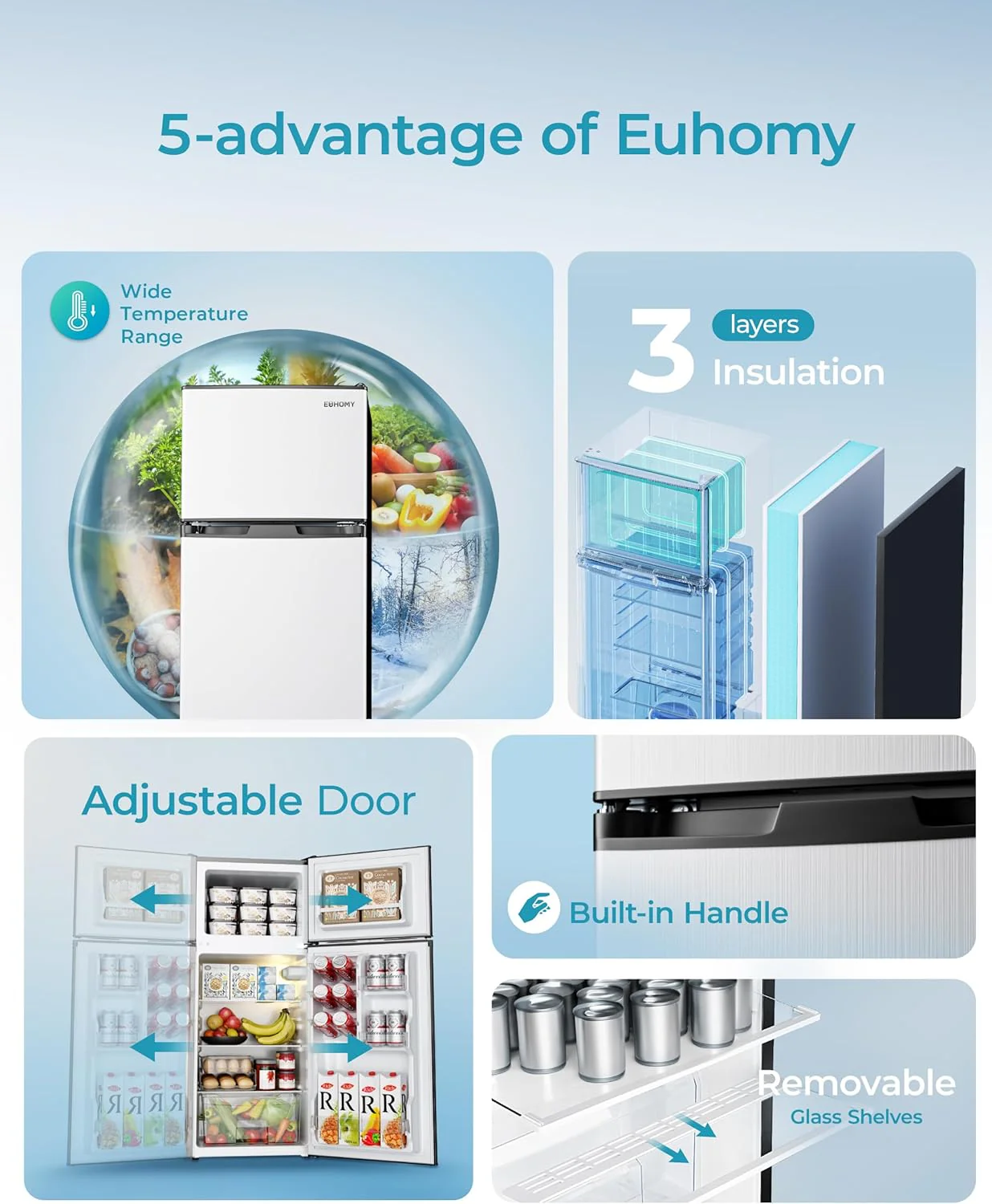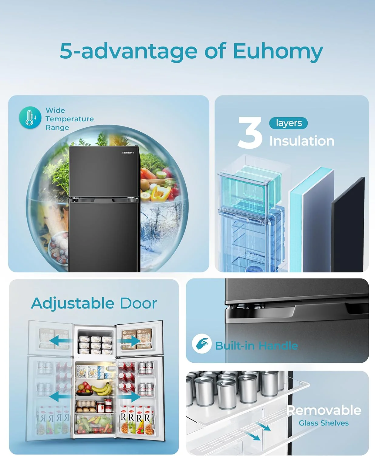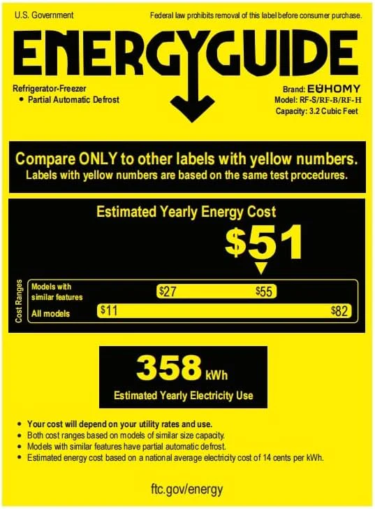 • EVERYTHING WE DO IS TO SATISFY YOU - Euhomy is also very dedicated to save energy. Mini refrigerator have UL energy certificates and only need 0.98 kwh per day. In the long run. this is very good for your wallet. Euhomy provides a 12-month product support. If you experience any issues. please ask us for help and we will help you solve them. Your satisfaction is our unremitting pursuit. Please note: You'd better put the small fridge with freezer upright for at least 1 day before using it