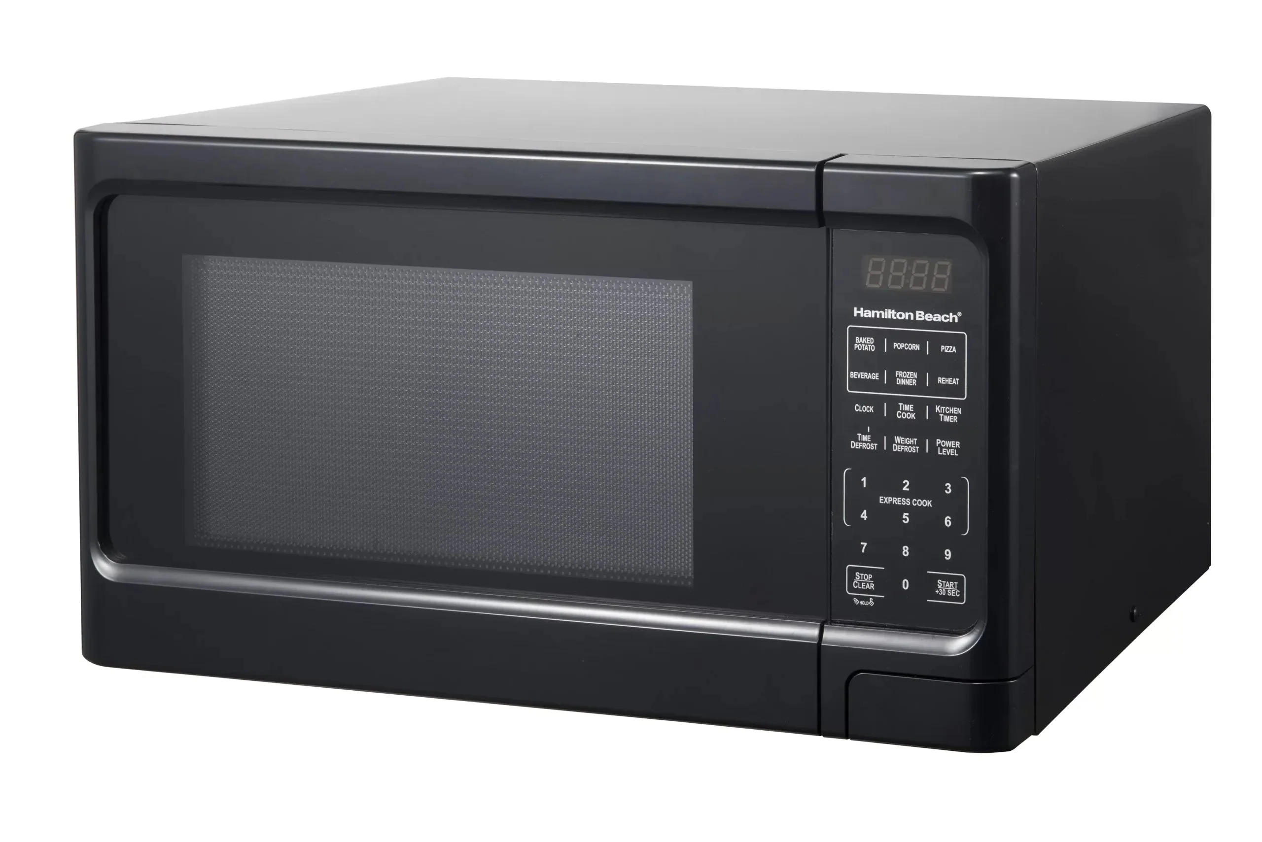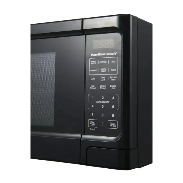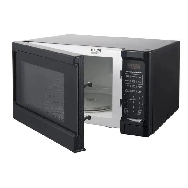 Upgrade your kitchen with the Hamilton Beach Microwave Oven (1000W 1.1 Cu Ft). A breeze to use . it features six convenient functions for easy . one-touch cooking . ensuring that meal preparation goes quickly and smoothly. The Hamilton Beach stainless steel microwave also has simple-to-use touchpad controls and an LED display. Programs are easily controlled based on food weight . and it offers customized cooking with 10 variable levels. It also has defrost-by-weight and speed-defrost for those nights when quick meals are needed. The black digital microwave is designed with a convenient timer function too. This model includes a child lock for added safety. It comes in multiple colors . so users can choose an ideal match for the kitchen decor. With its standard size . it can easily sit on a countertop or be mounted for easy access.