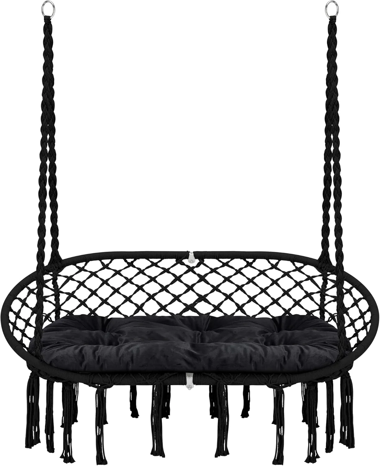 • 【Comfort and High Quality 】Double swing chair pay attention to quality and user experience. The hammock chair is made of pure cotton fabric and supported by a high-strength frame. And we have a large cushion, which has a thicker filling and smoother fabric compared to other cushions. It can ensure the comfort and air permeability on the seat.