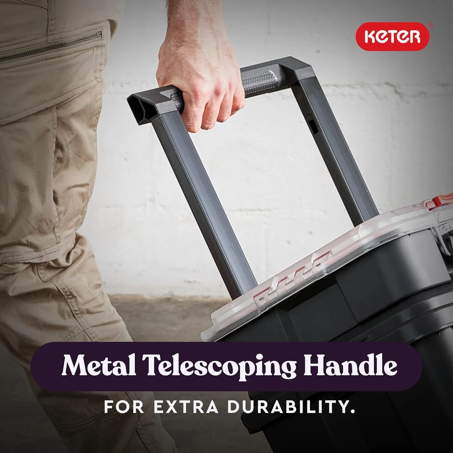 - Metal telescopic handle with 7�� durable wheels and side grips for maximum mobility to your next project or jobsite