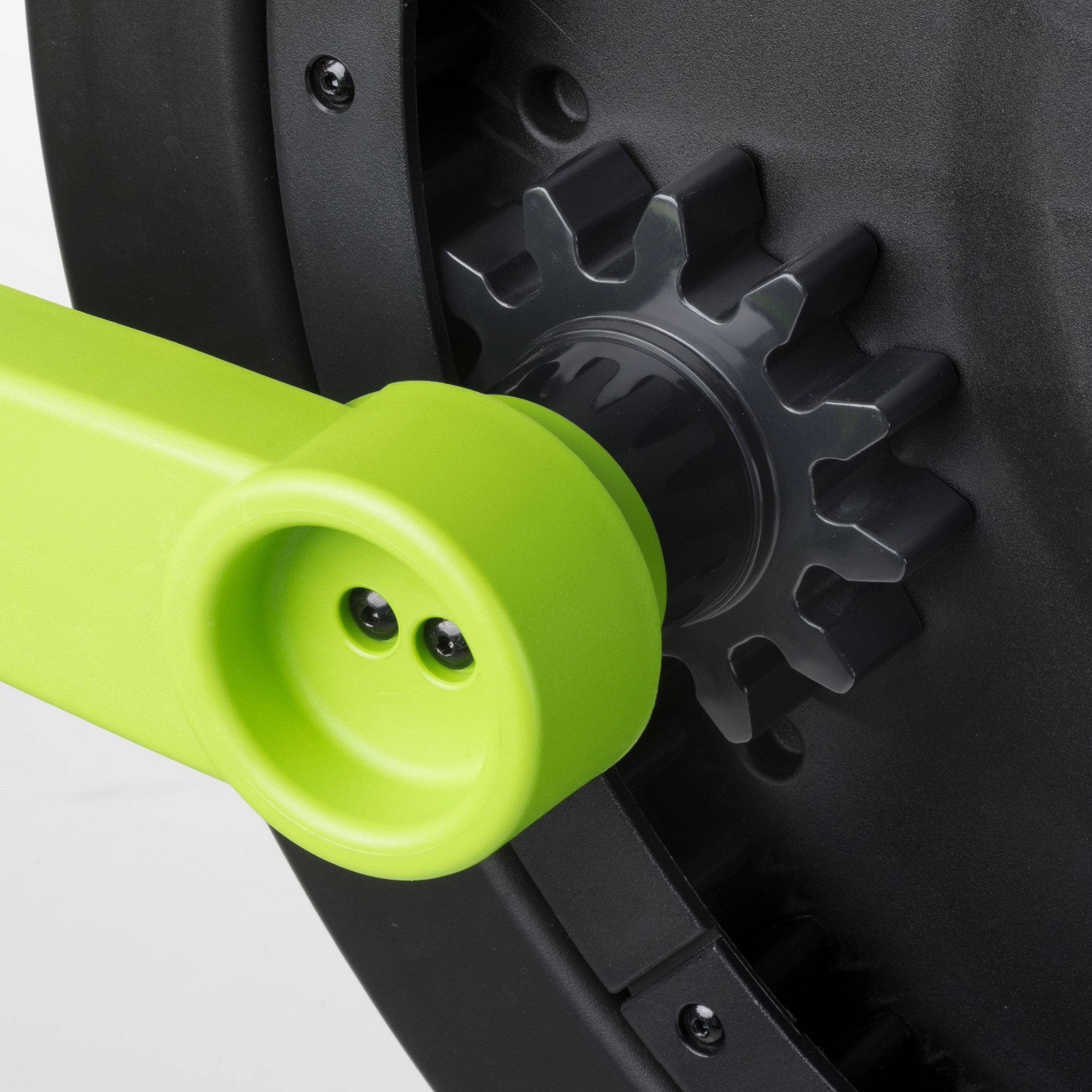 The patent-pending built-in ratchet lock along with the geared rotating handle makes it much easier than other composters in the marketplace to turn and mix the compost materialThis is an absolute improvement because you can now rotate the drum easily and the geared rachet will automatically lock rotation in any position you wanted which is very useful and effective!
