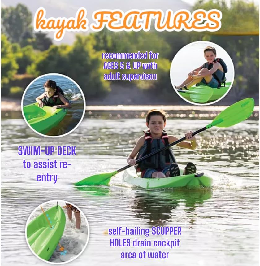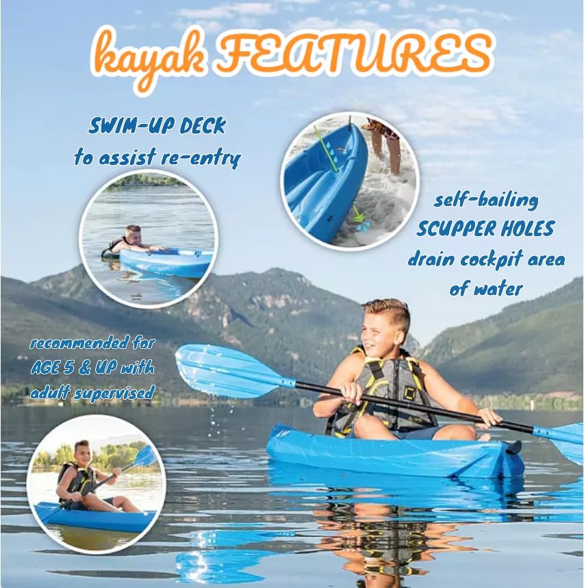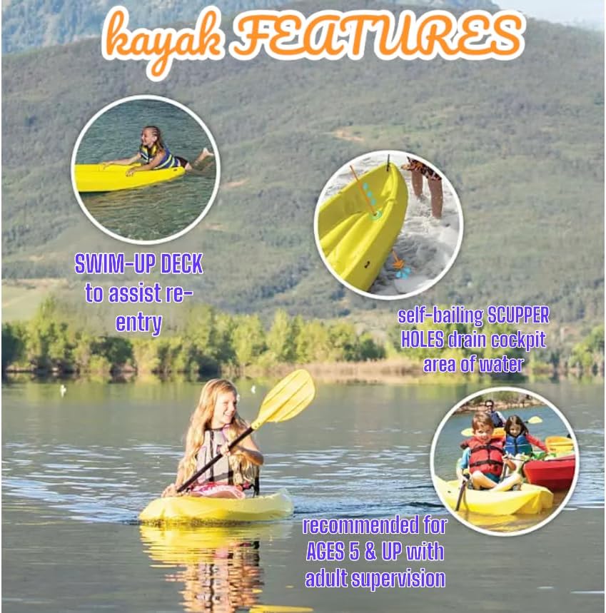 - **Convenience:** Molded finger handles on each side make it simple for kids to carry and transport the kayak.