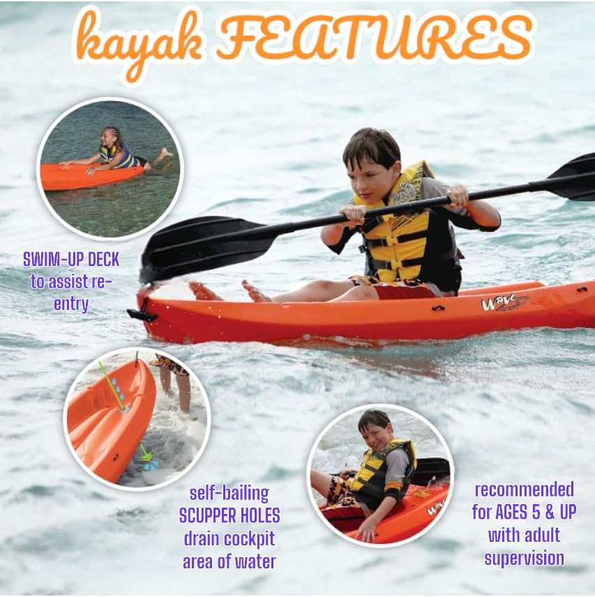 - **Stability and Safety:** The Wave kayak's wide stance provides a stable platform for paddling. ensuring your child stays safely in the kayak.