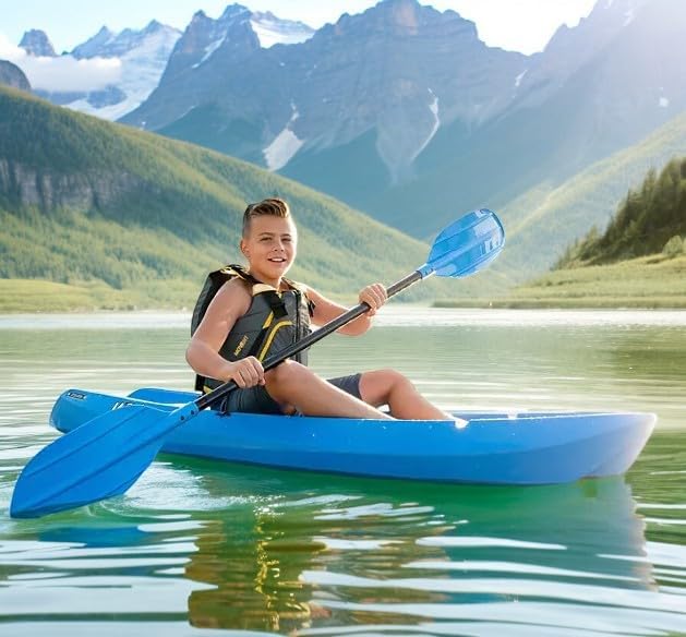 This 6' Youth Kayak: Perfect for Young Adventurers Designed for kids aged 5 and up. or up to 130 lbs. the 6' Youth Kayak offers a fantastic entry into the world of kayaking. Its wide stance ensures a stable paddling platform. keeping your child safe and secure. The sloped backend and swim-up step allow for easy re-entry from the water. making it perfect for those little swimmers. Whether your child is a first-time paddler or has some experience. the 6' Youth Kayak is the perfect companion for their water adventures. Its combination of stability. lightweight design. and ergonomic features makes it ideal for young recreational kayakers.