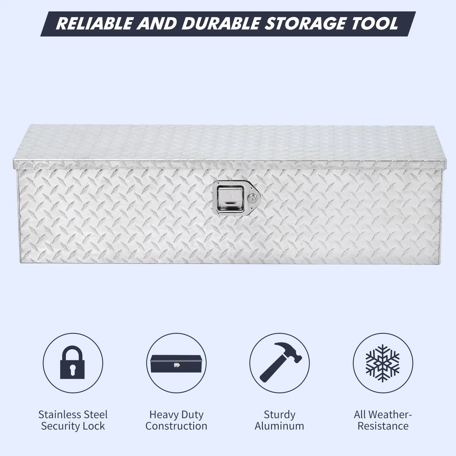 48 Inch Diamond Plate Truck Bed Tool Box with Shelf Silver
