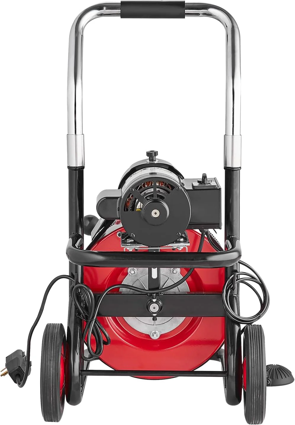 - Portable and Space-Saving: Take it anywhere. store it with ease! This drain cleaning machine is equipped with 8-in wheels. enabling effortless movement. The foldable handle provides a comfortable grip. while making it convenient to store when not in use