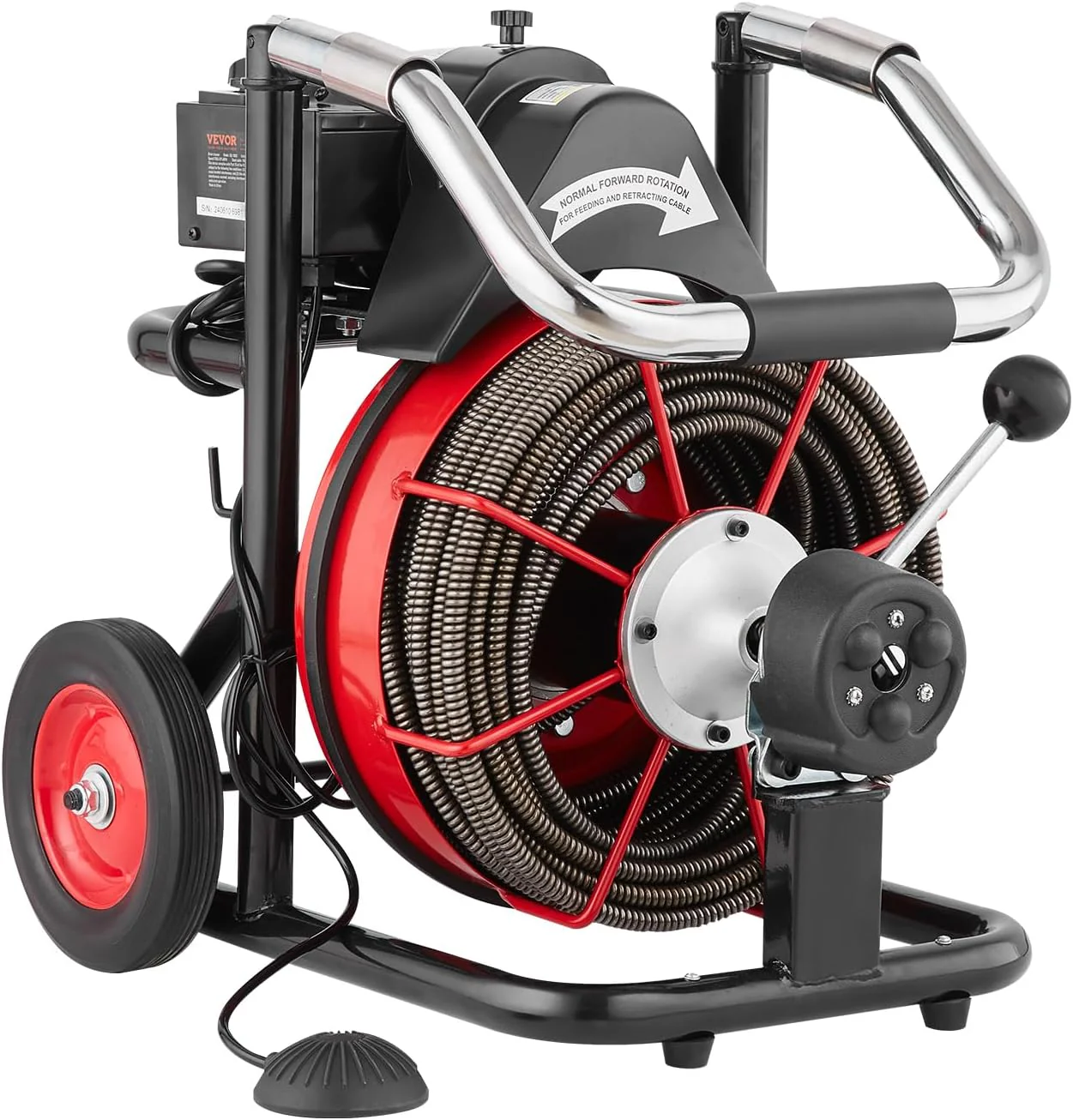 - Attack Stubborn Clogs: VEVOR drain cleaner machine features an automatic feed control system to power the cable in and out of drainage pipes. Enhanced with forward/reverse control and air-activated foot switch. managing the cable becomes more effortless
