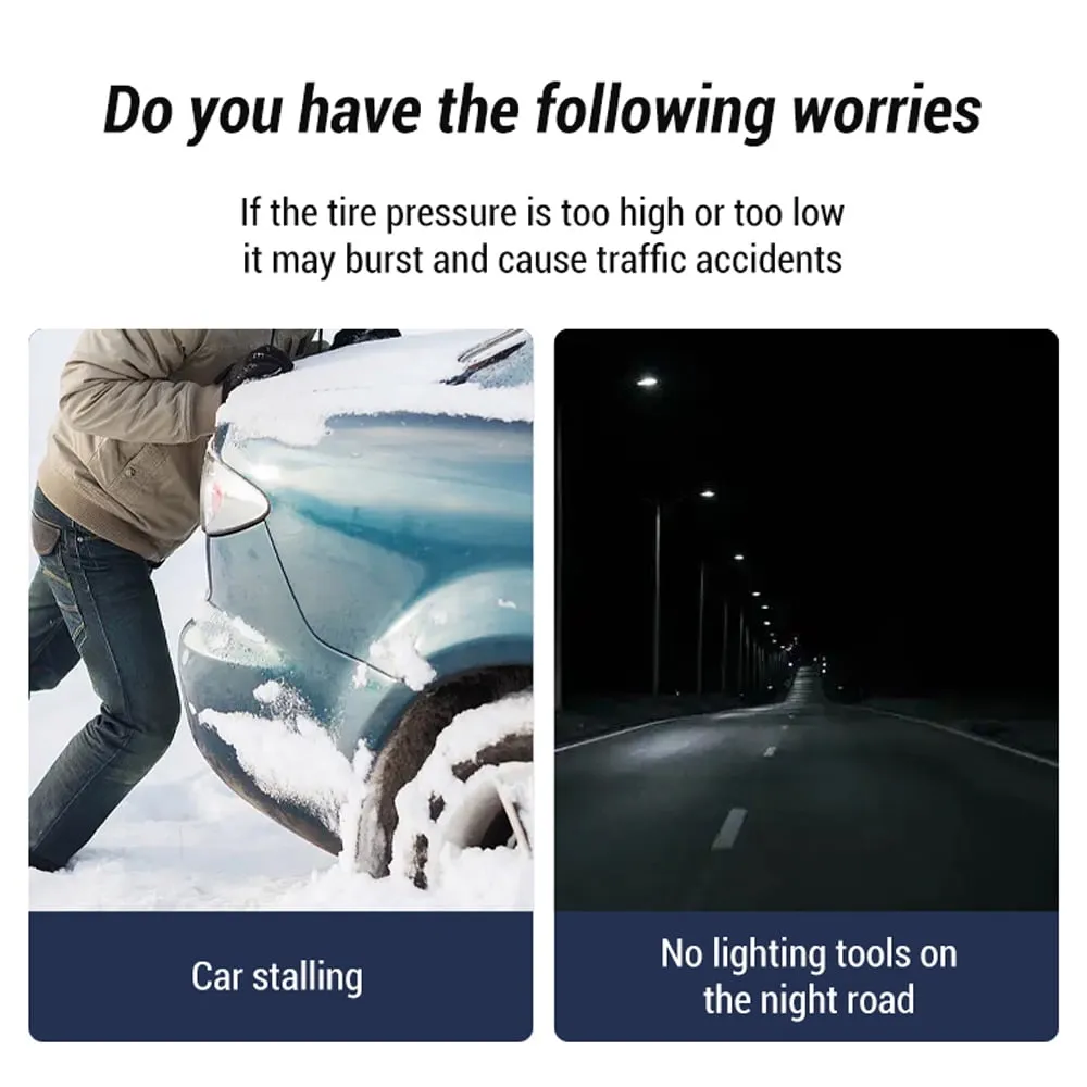 4-in-1 Jump Starter with 260 PSI Air Compressor; 12VDC outlet; Built-in Work Light