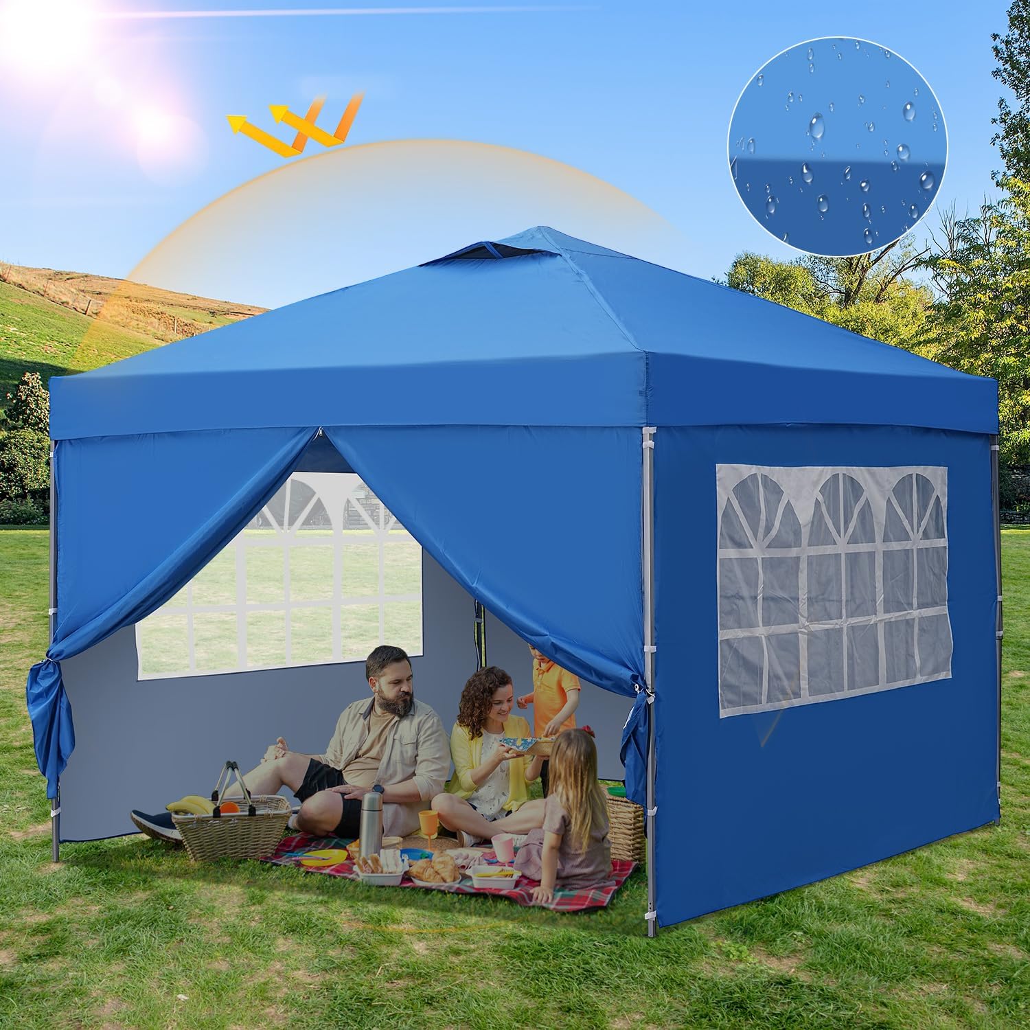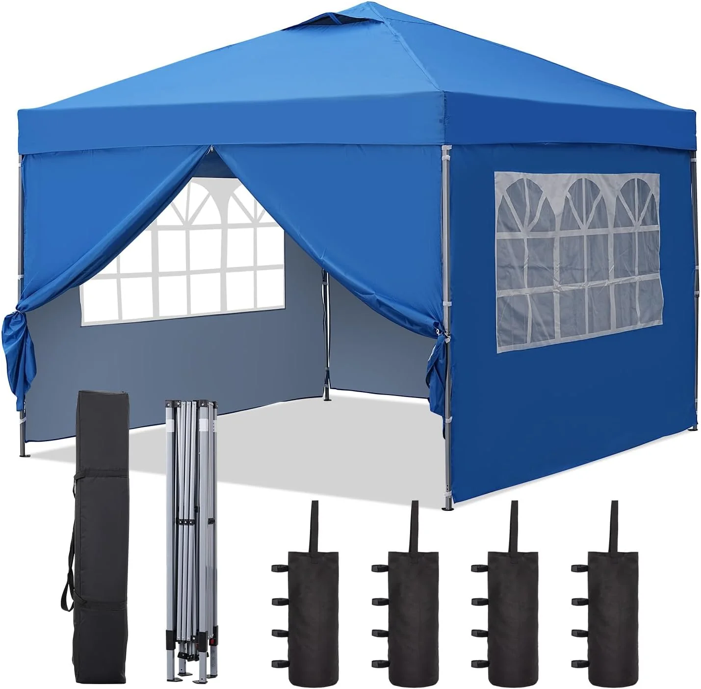 10x10 Pop Up Canopy Tent, Outdoor Canopy Tent, Patio Tent,Commercial Instant Gazebos,4 Sidewalls, Portable Shelter Canopies, with 4 sandbags, Blue.