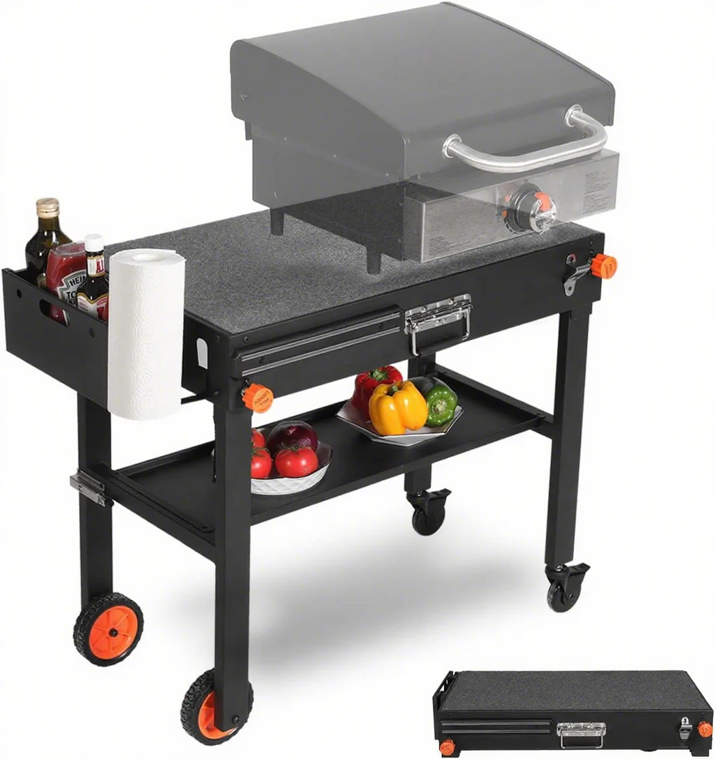Portable Outdoor Grill Table, Folding Grill Cart Solid and Sturdy, Griddle Stand Large Space, Blackstone Table with Paper Towel Holder, Grill Stand for Blackstone Griddle,Grills etc